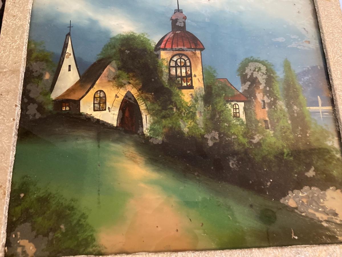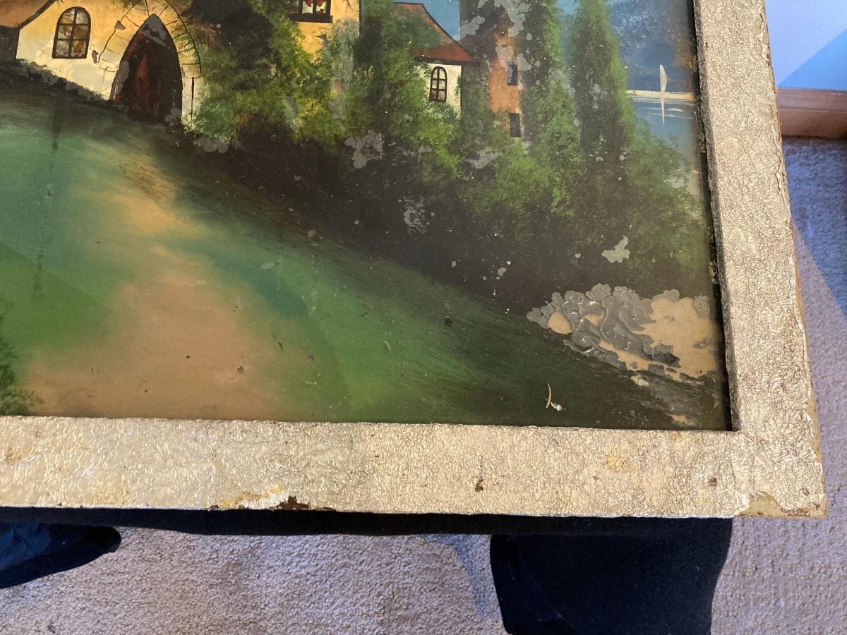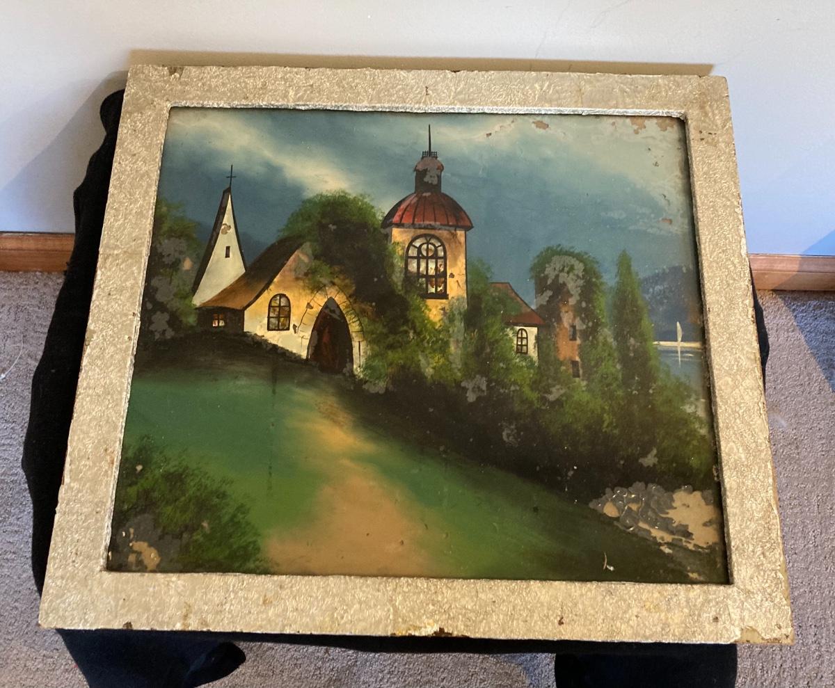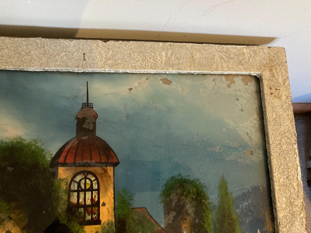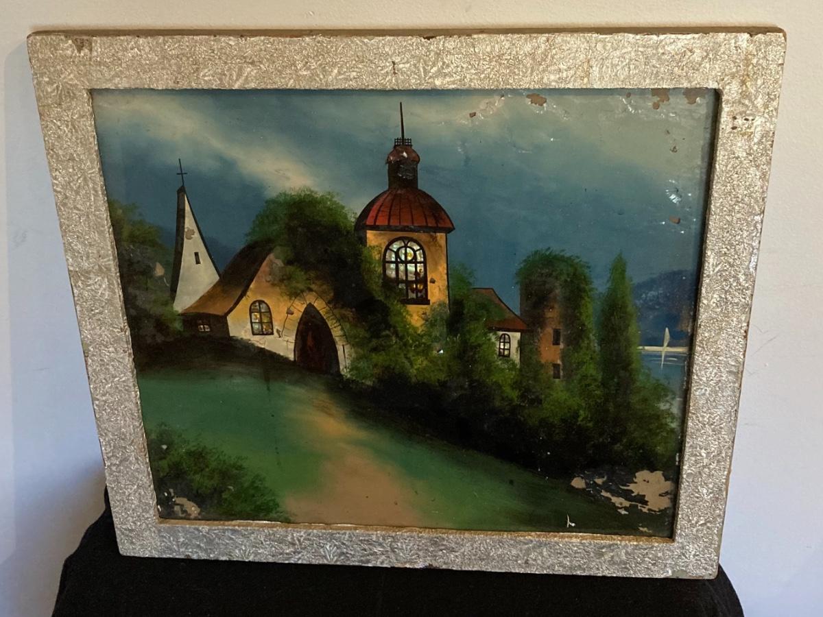 Reverse Painting On Glass with Original Frame 21 x 19”