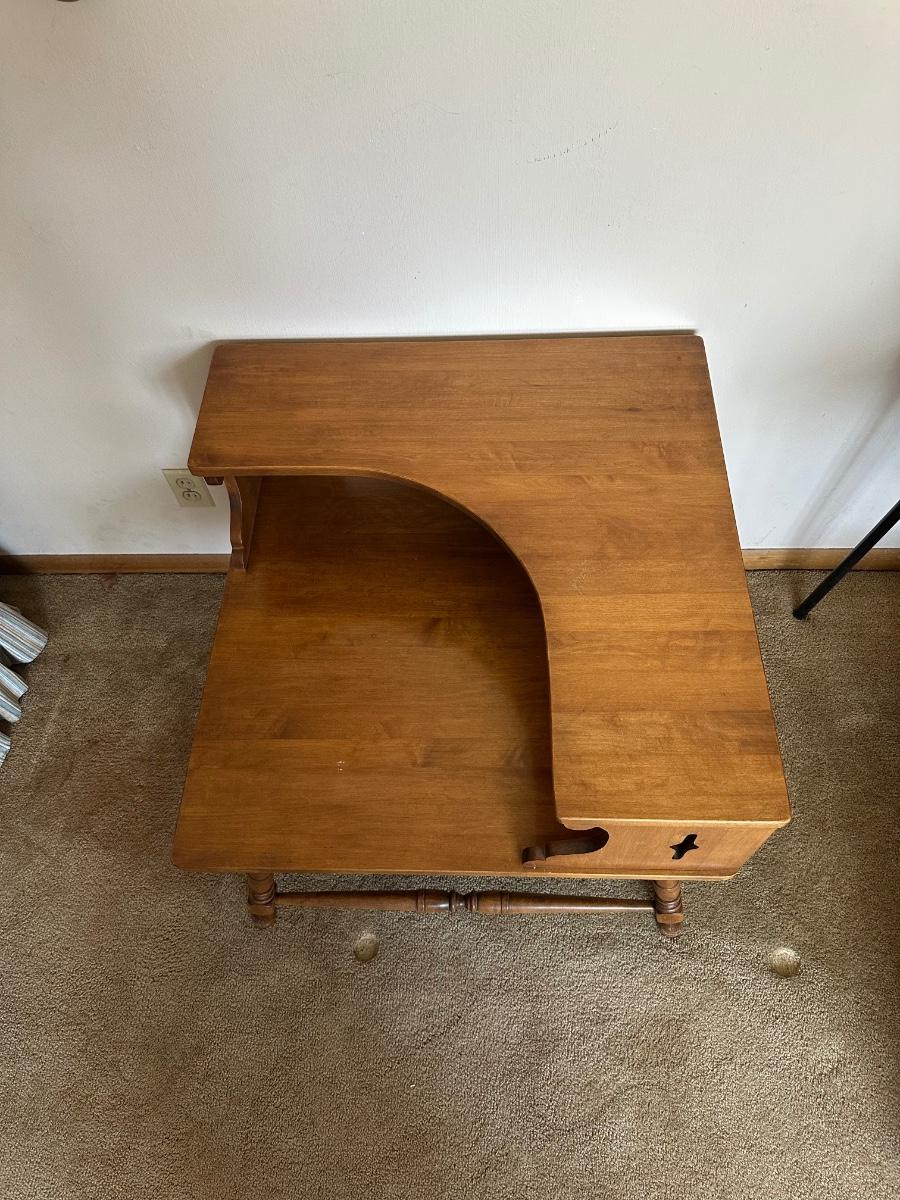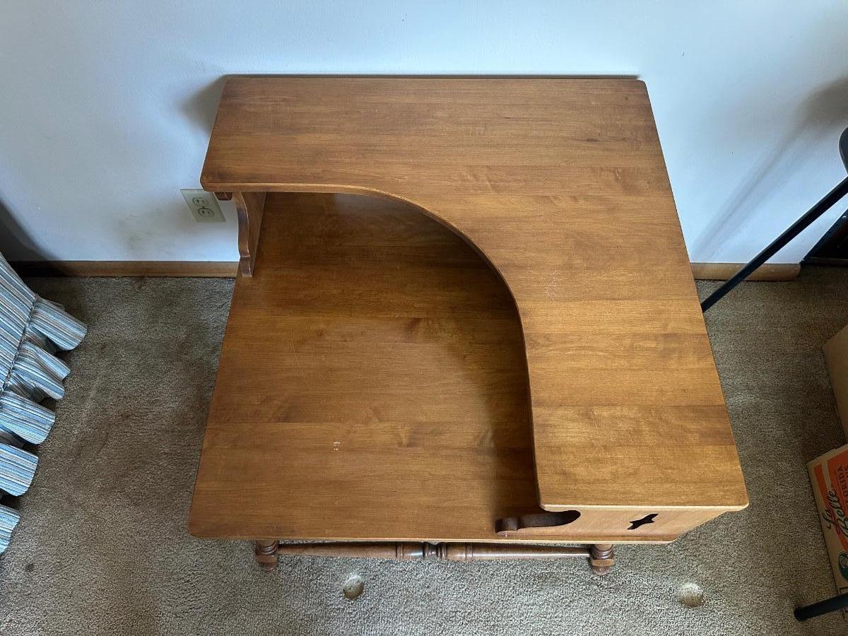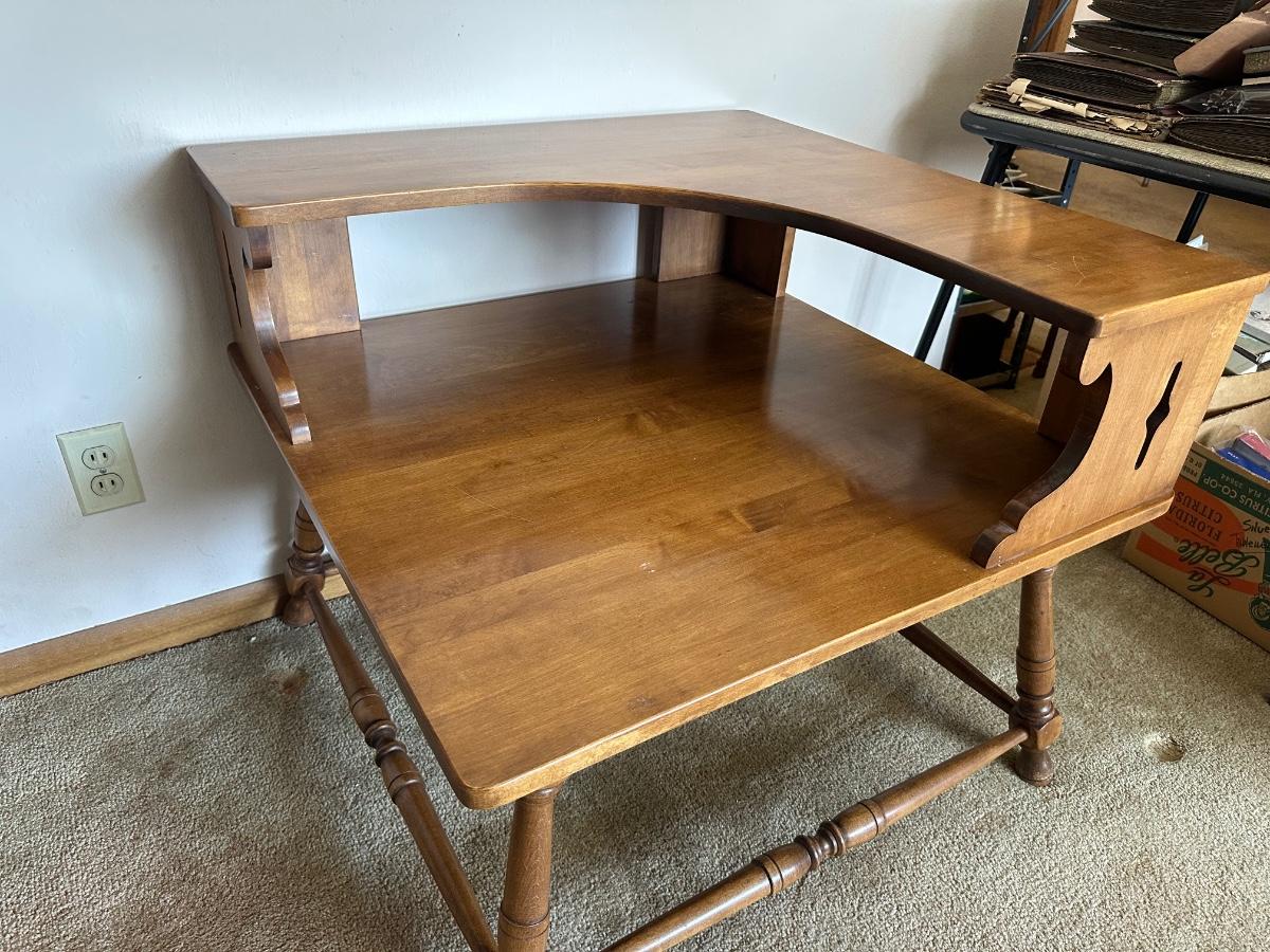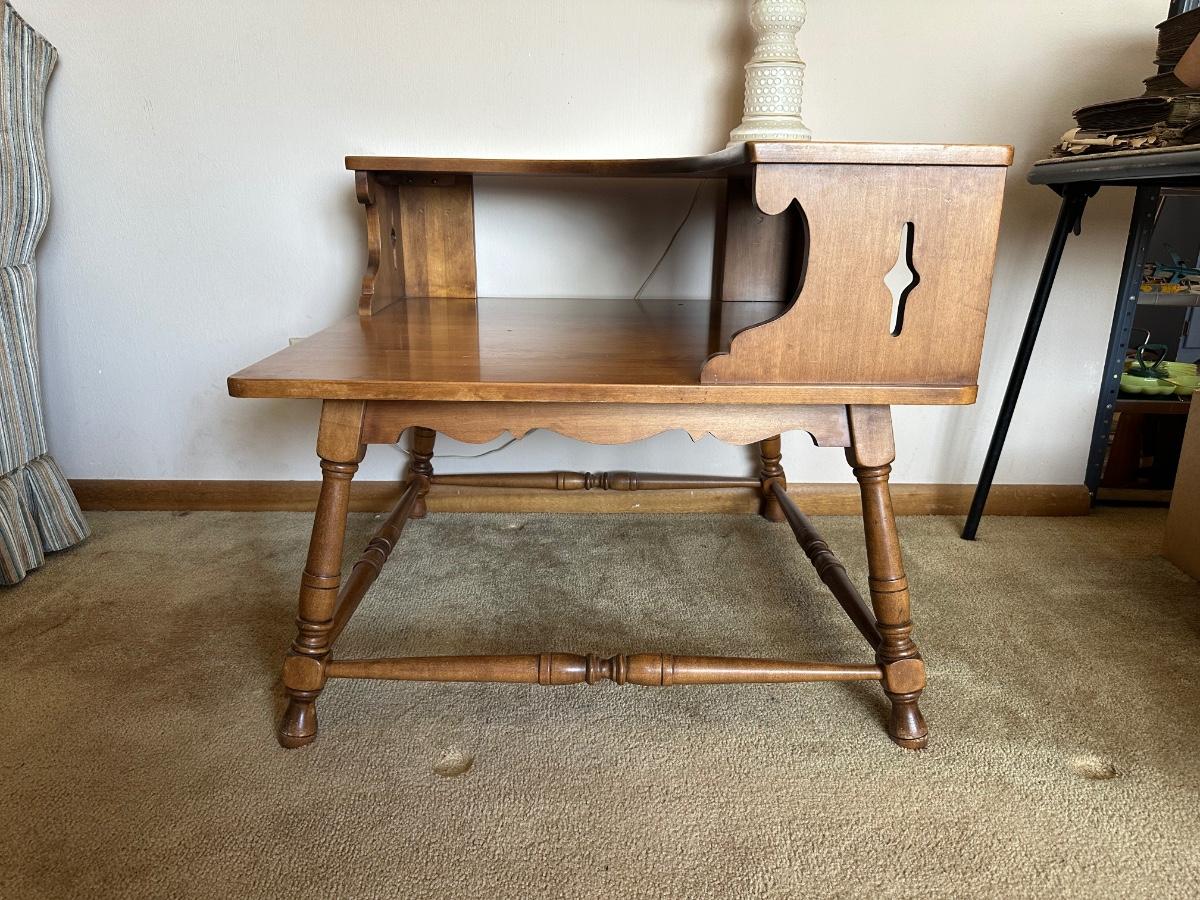 REVERSED HOBNAIL GLASS LAMP AND A MID-CENTURY 2 TIER END TABLE