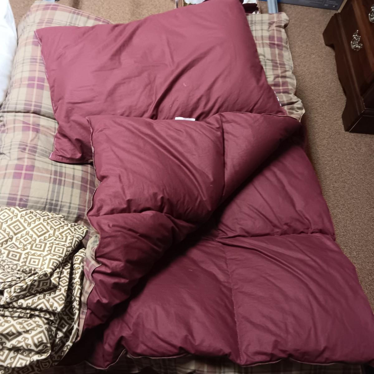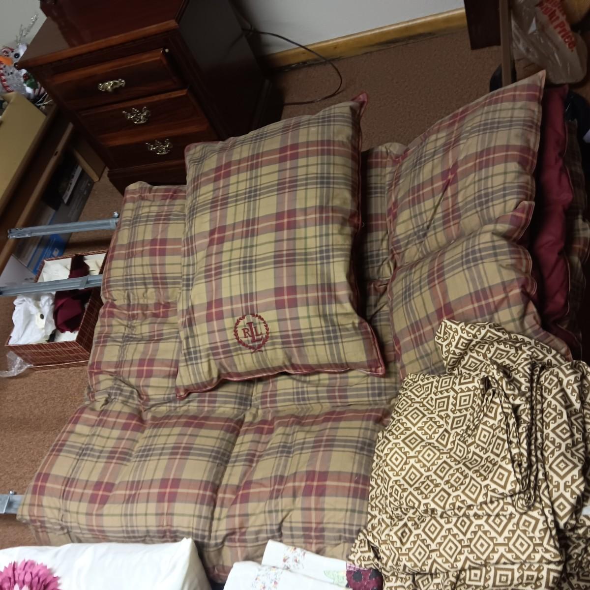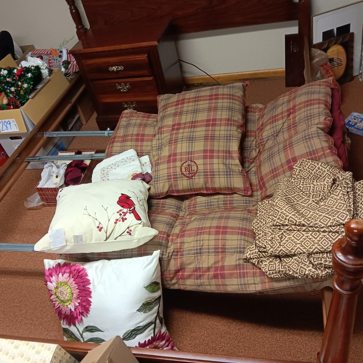 REVERSIBLE QUEEN COMFORTER, THROW PILLOWS AND KING SET OF SHEETS