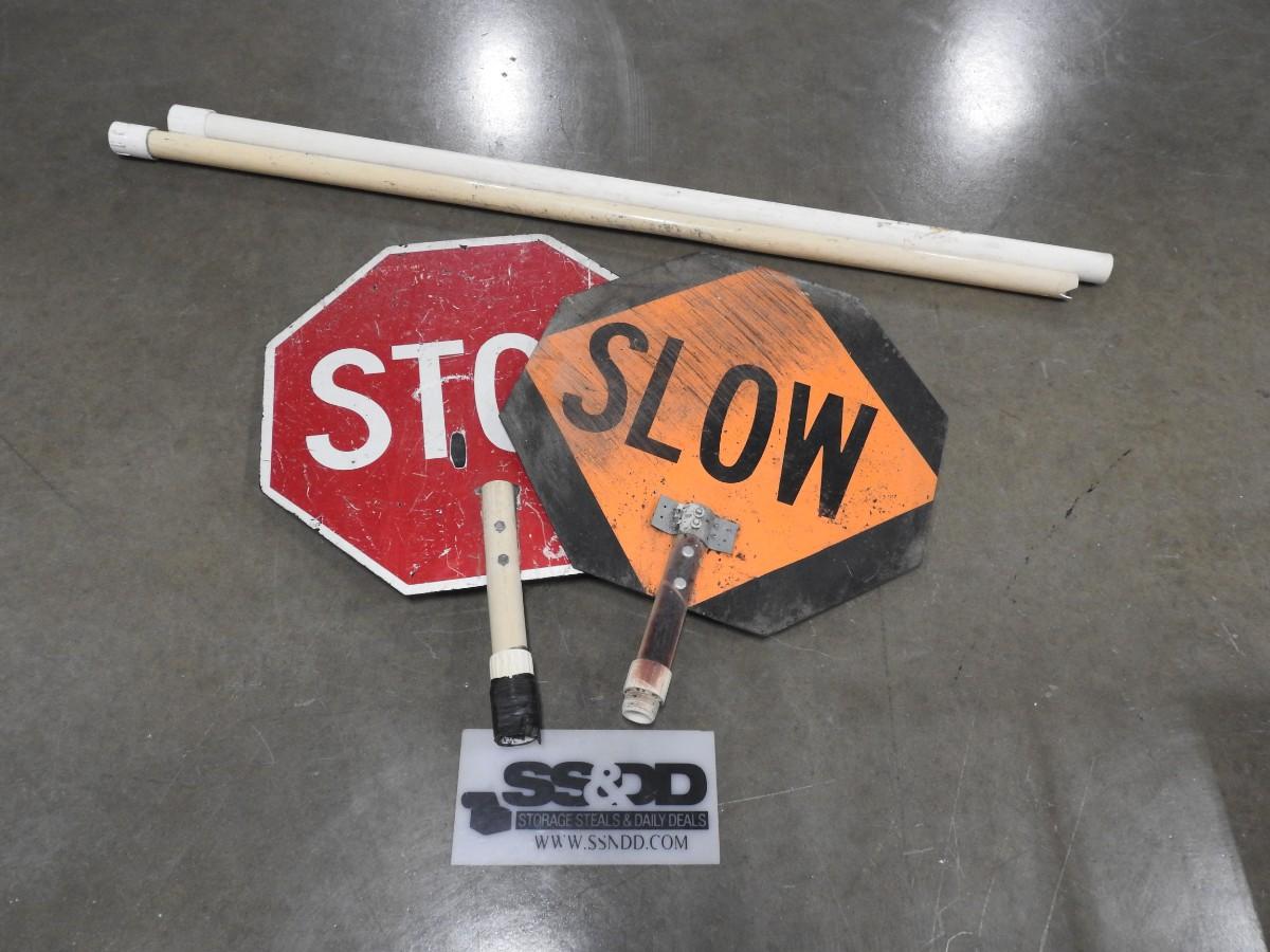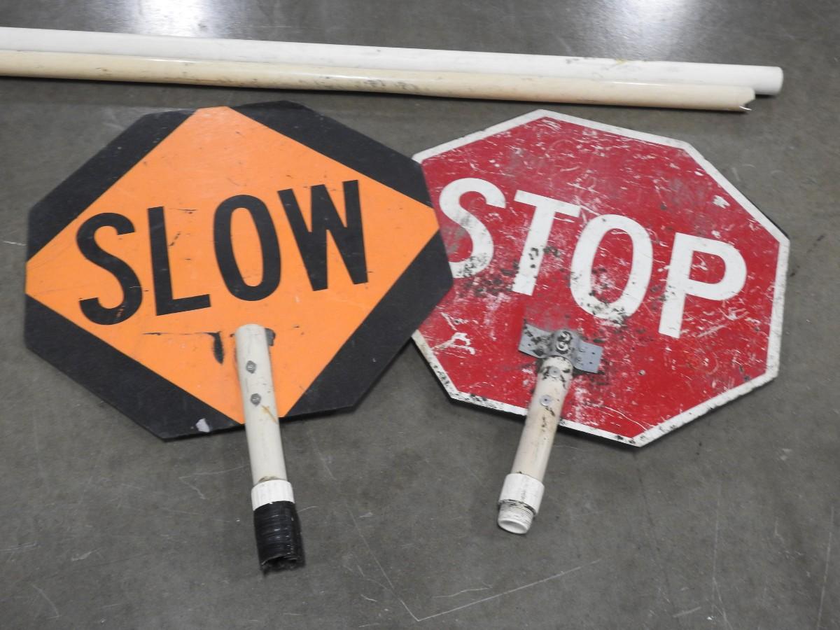 Reversible SLOW/STOP Signs w/Poles, Signs Are 23 3/4' Without Poles