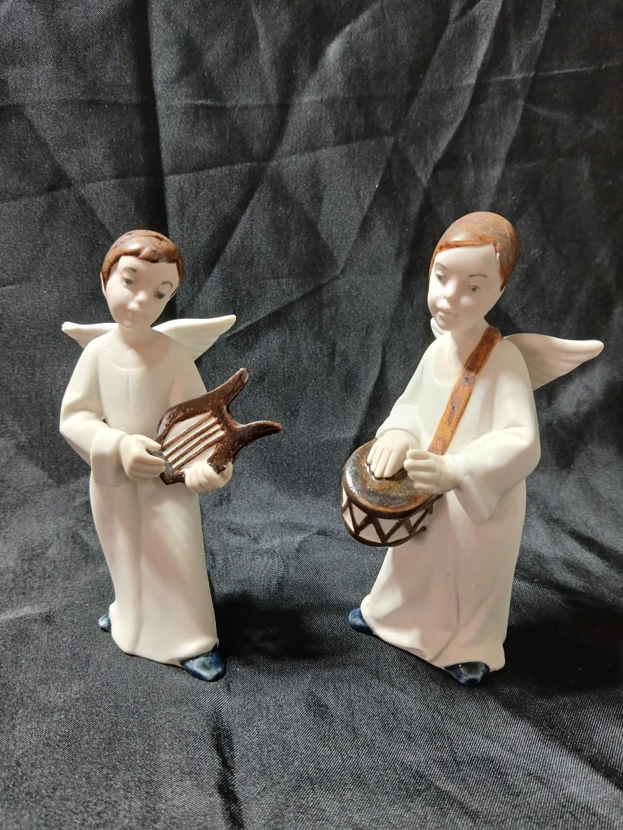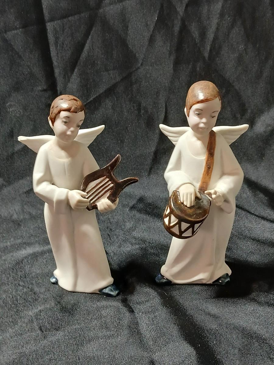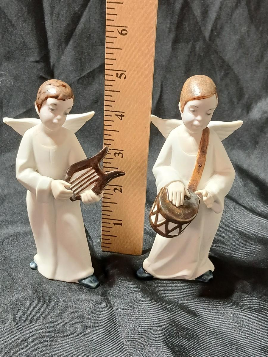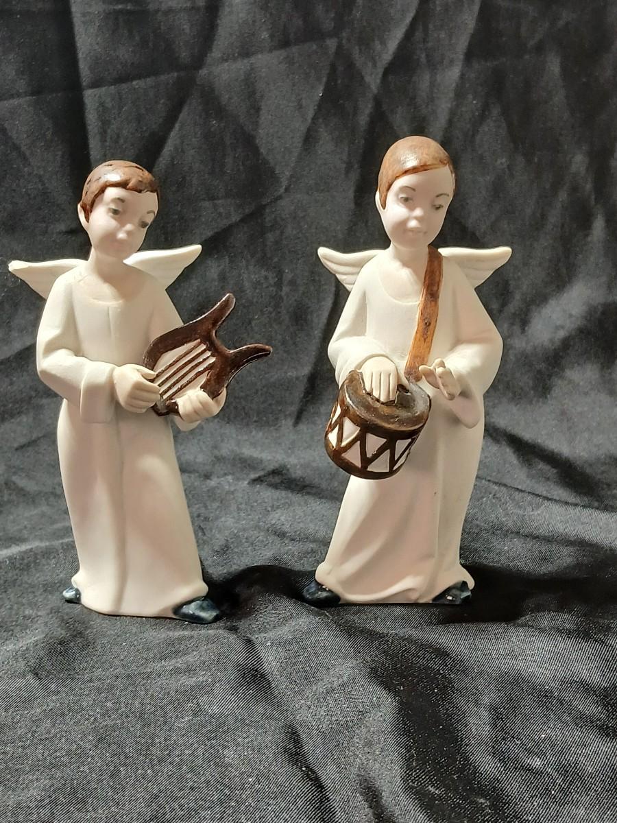 Rex Valencia porcelain boy angels playing musical instruments, handcrafted in Spain
