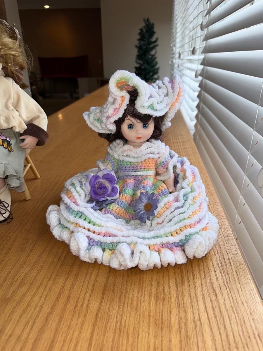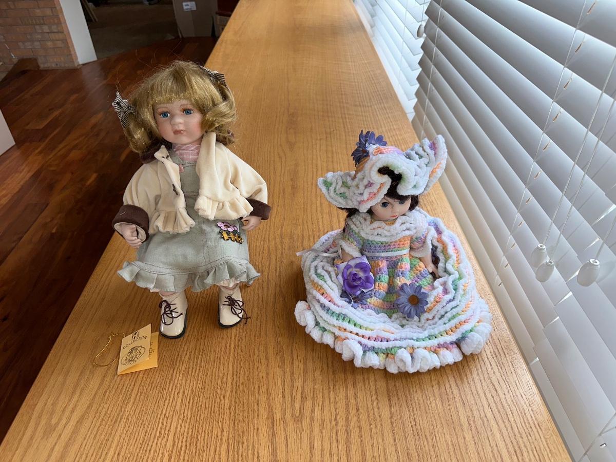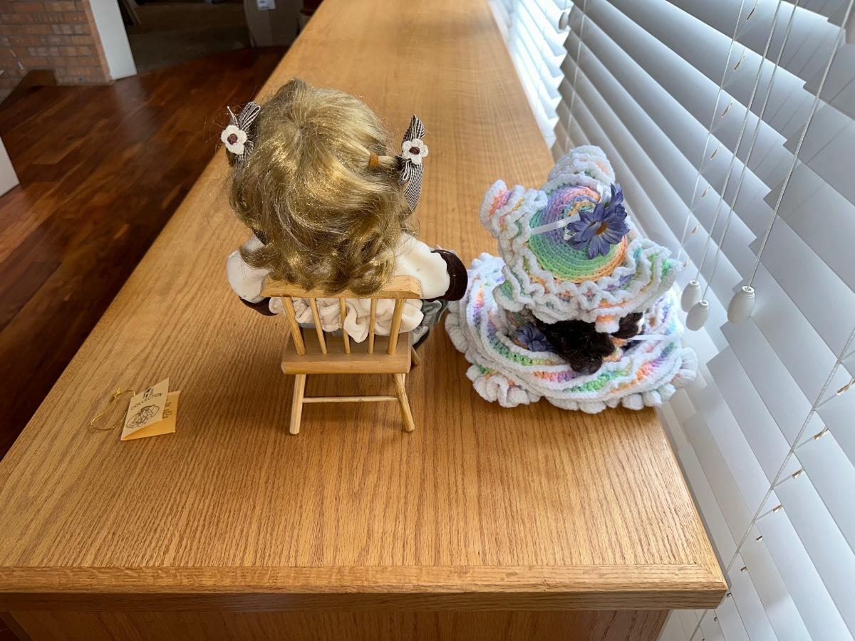 RF COLLECTION PORCELAIN DOLL AND HAND CROCHETED BED PILLOW DOLL