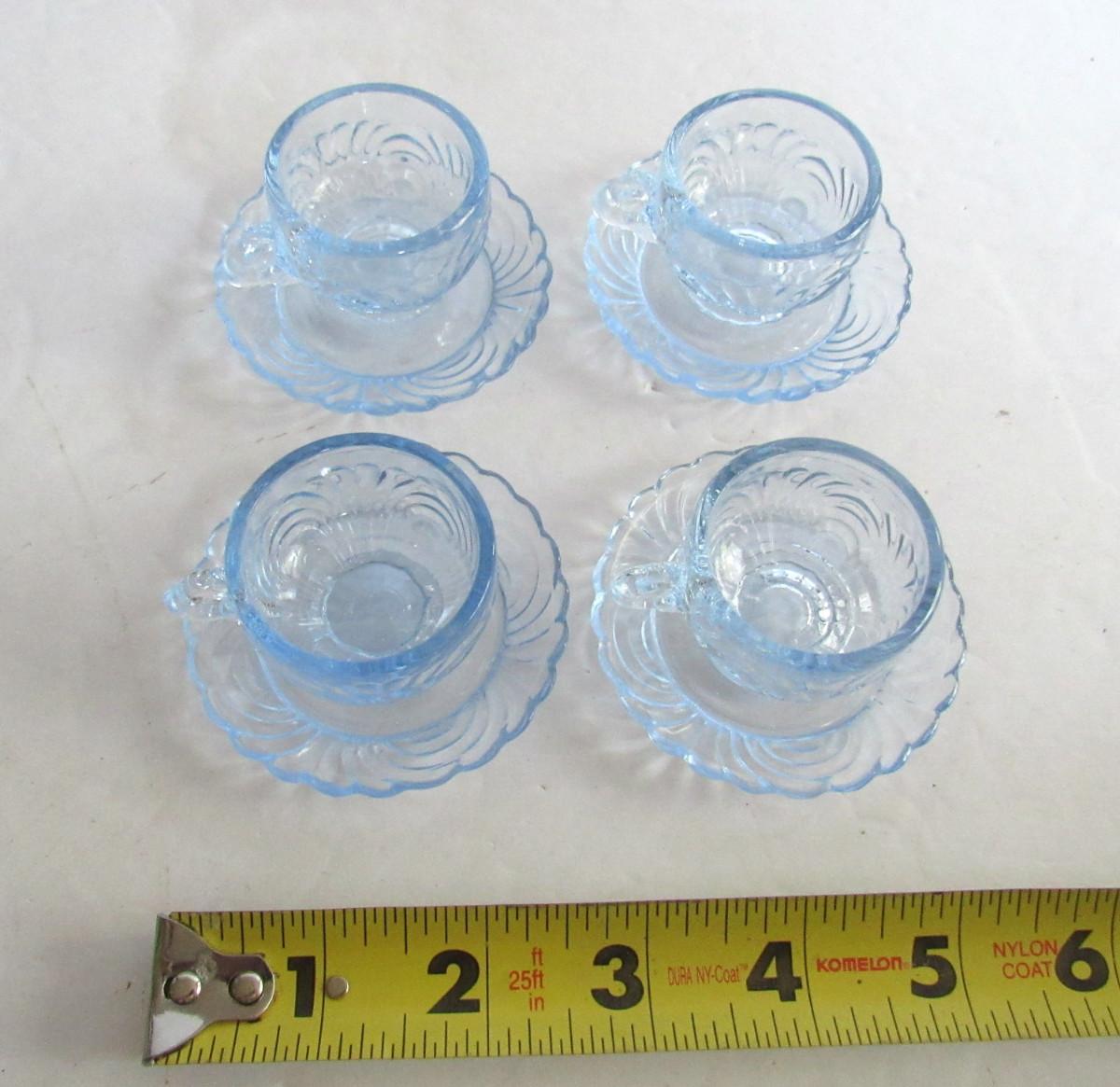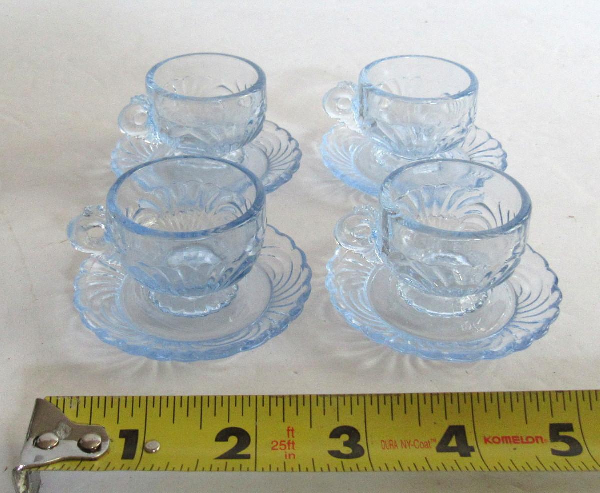 Older Mosser Glass Child's Lindsey Pattern Cup and Saucer Sets