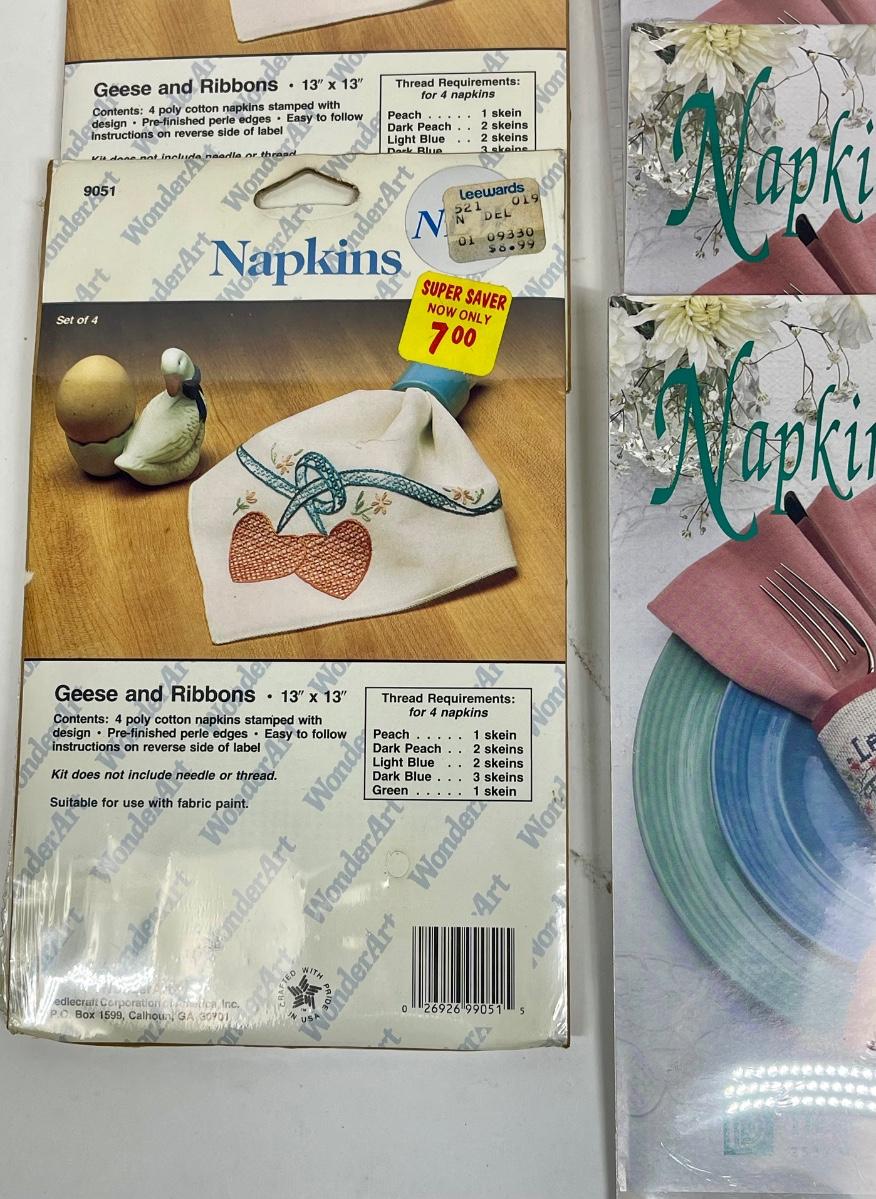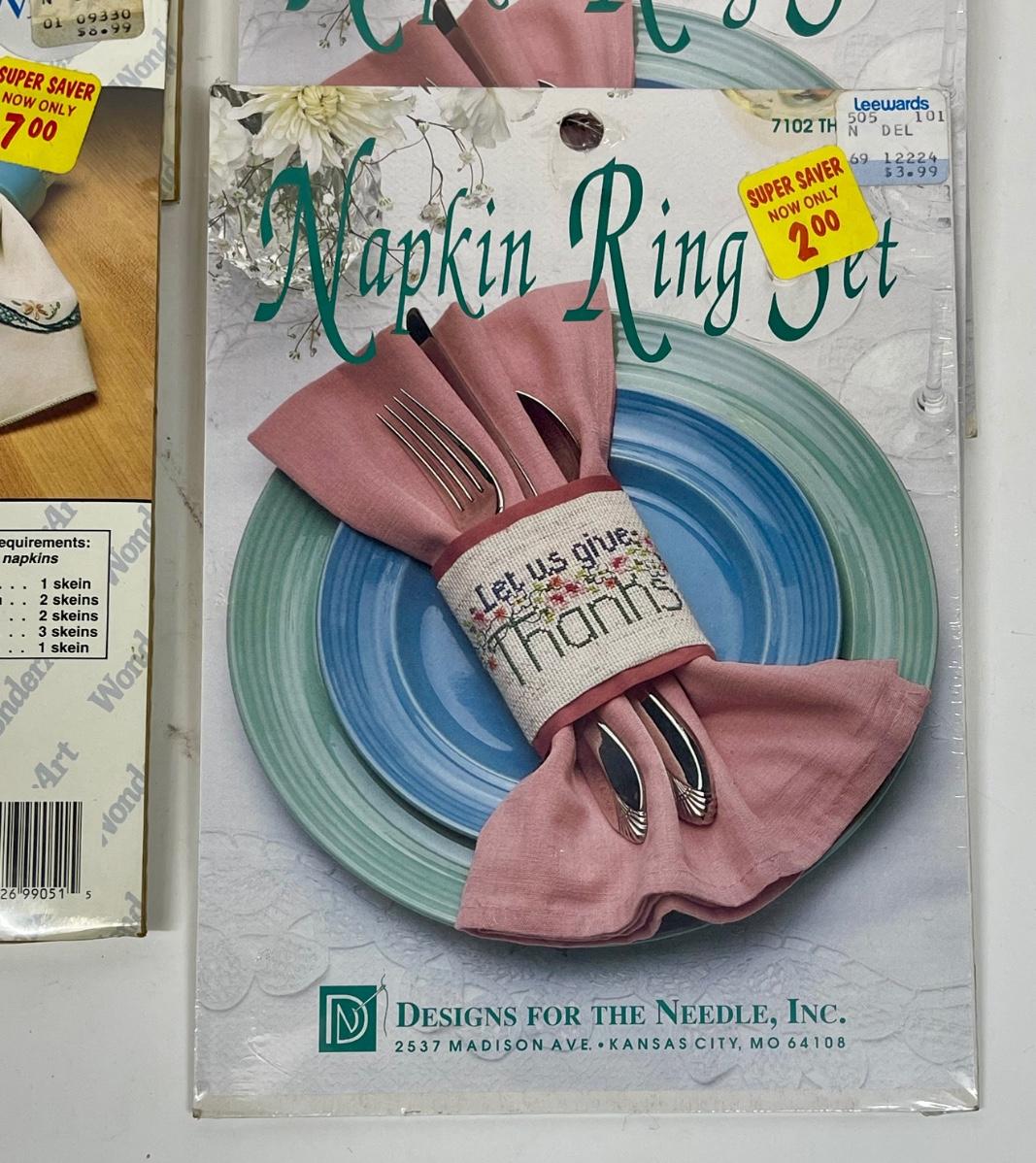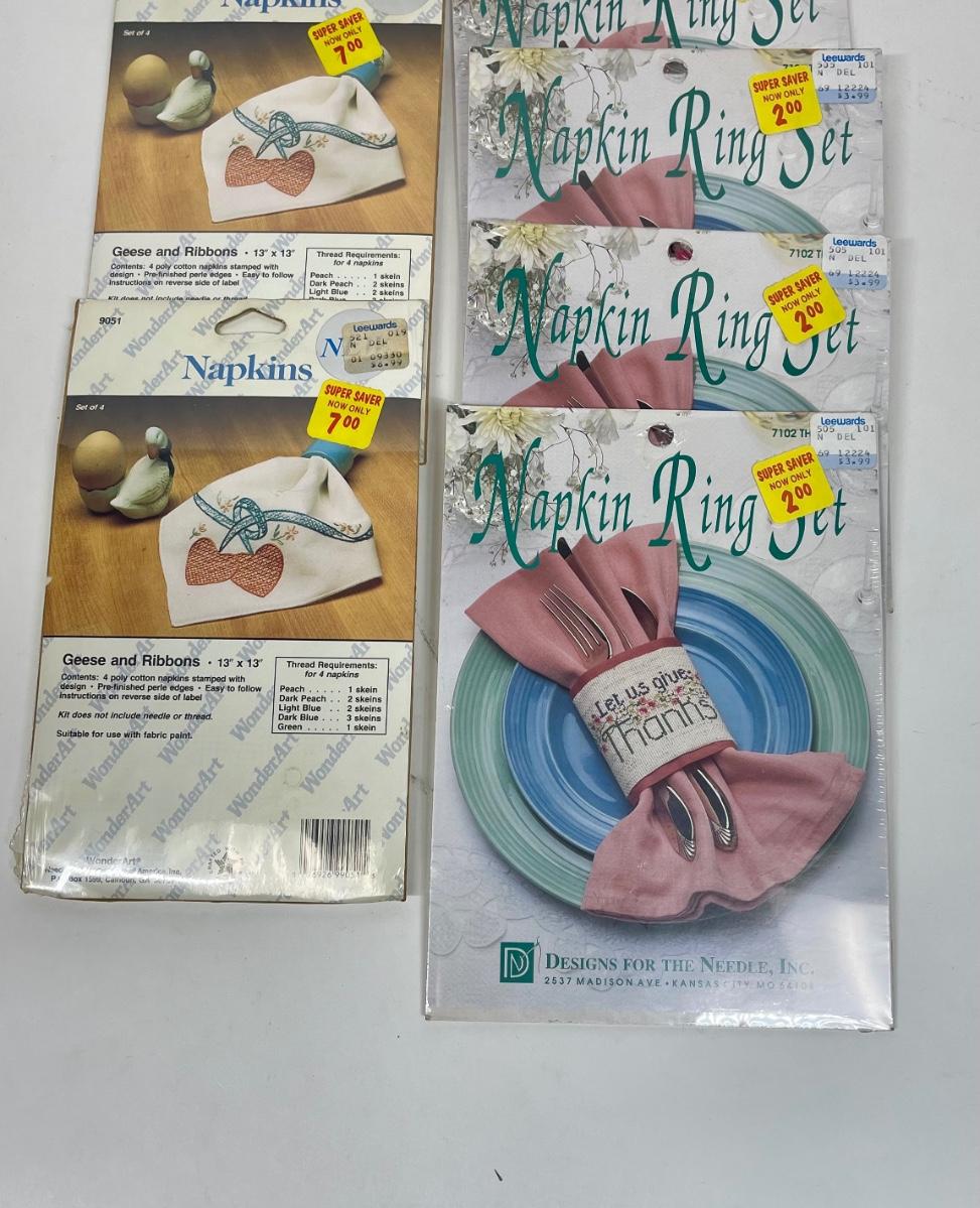 Lot of Needlepoint Cross stitch Napkin Ring and Napkin kits