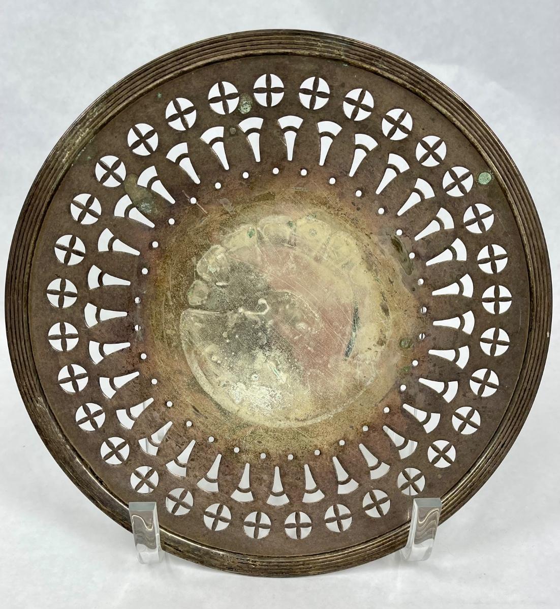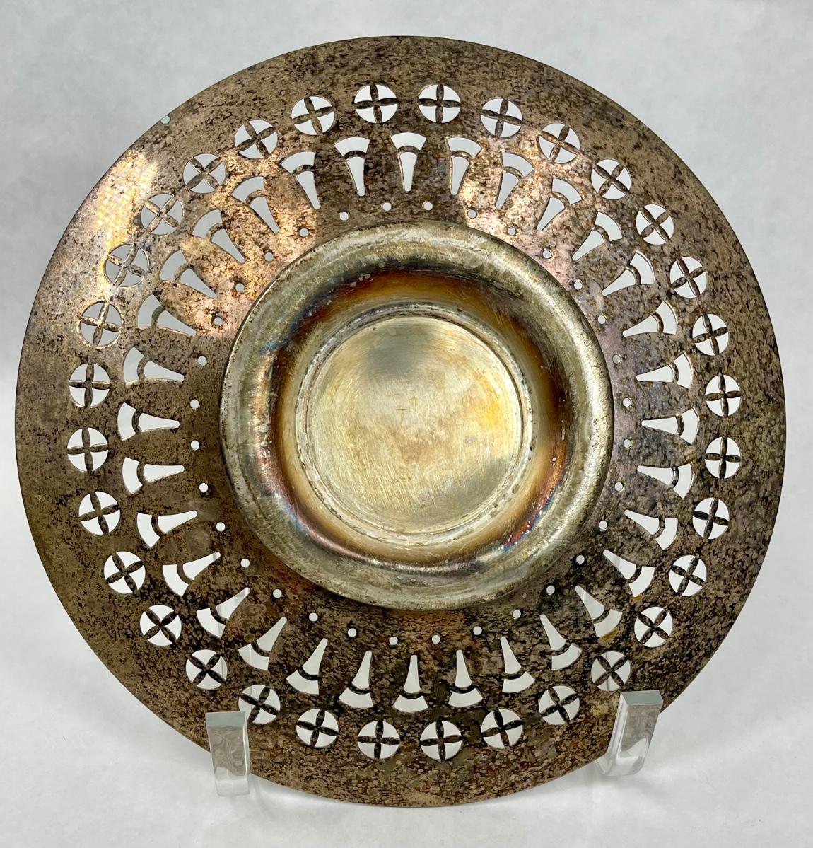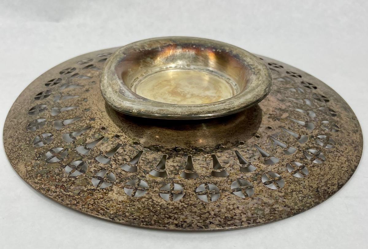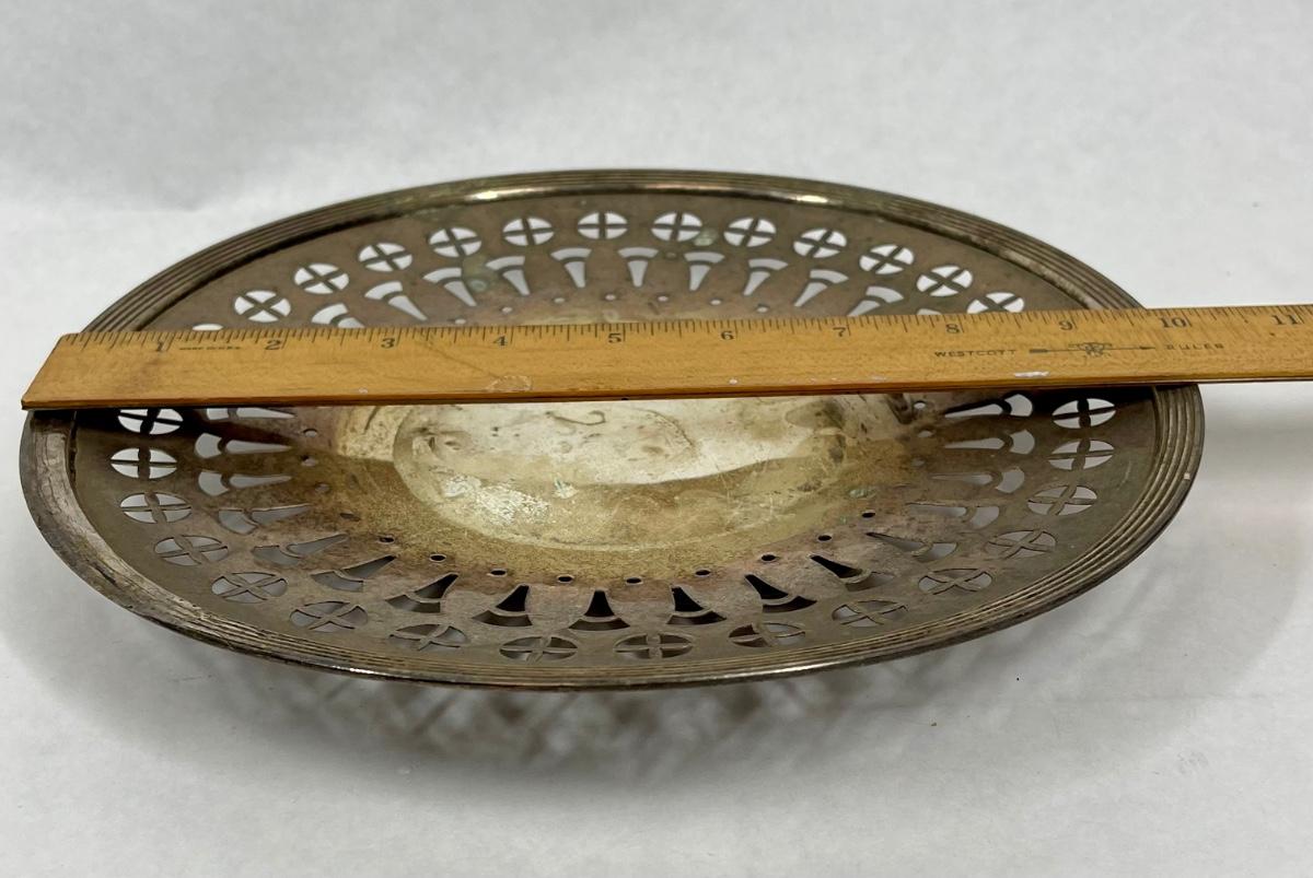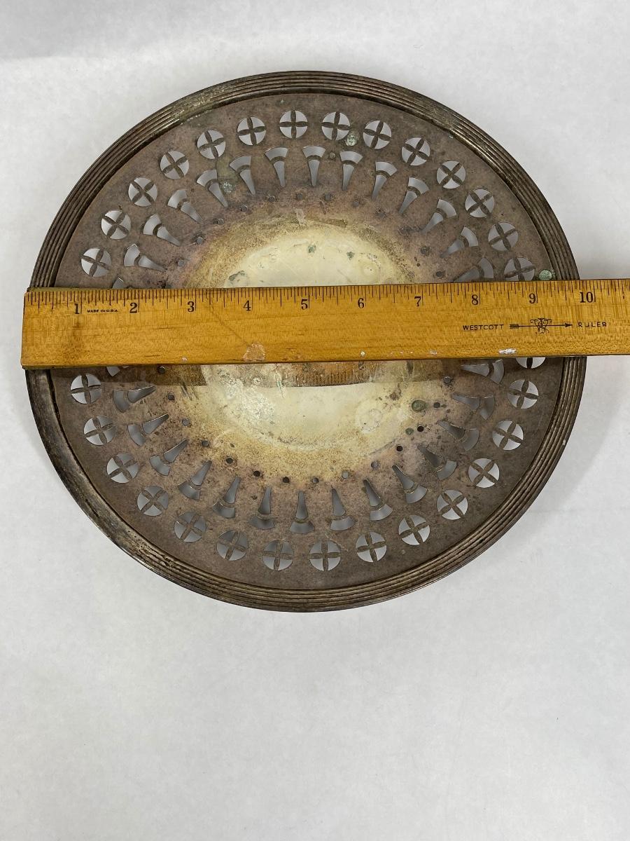 Vintage Silver-plate platter charger footed Hammered Cutout Border