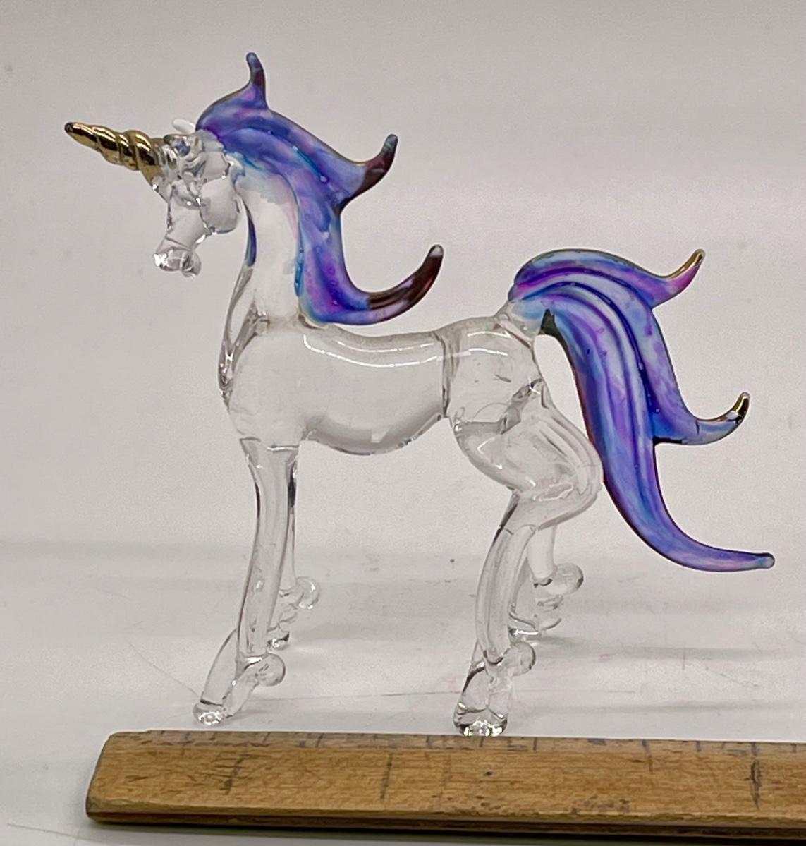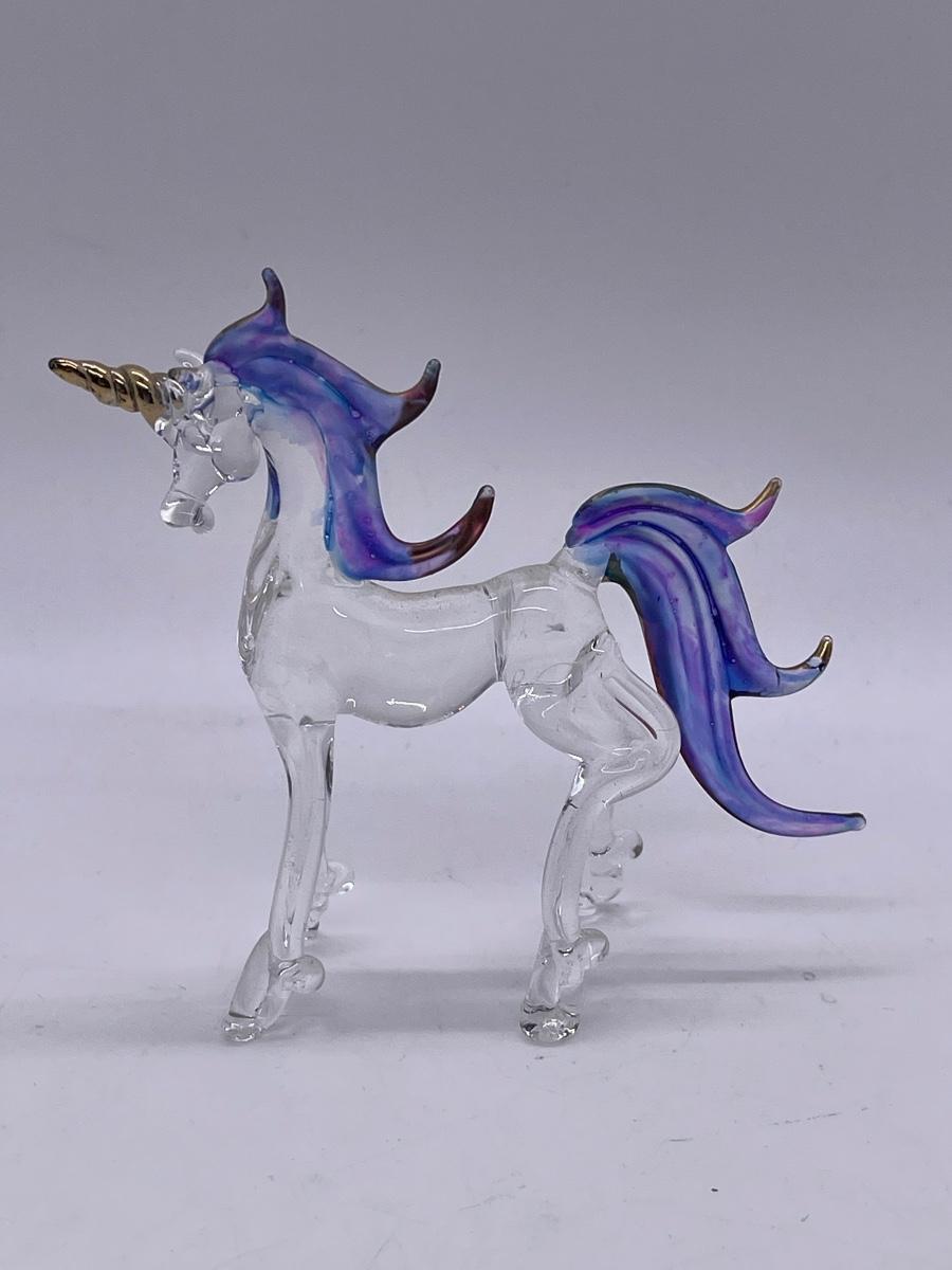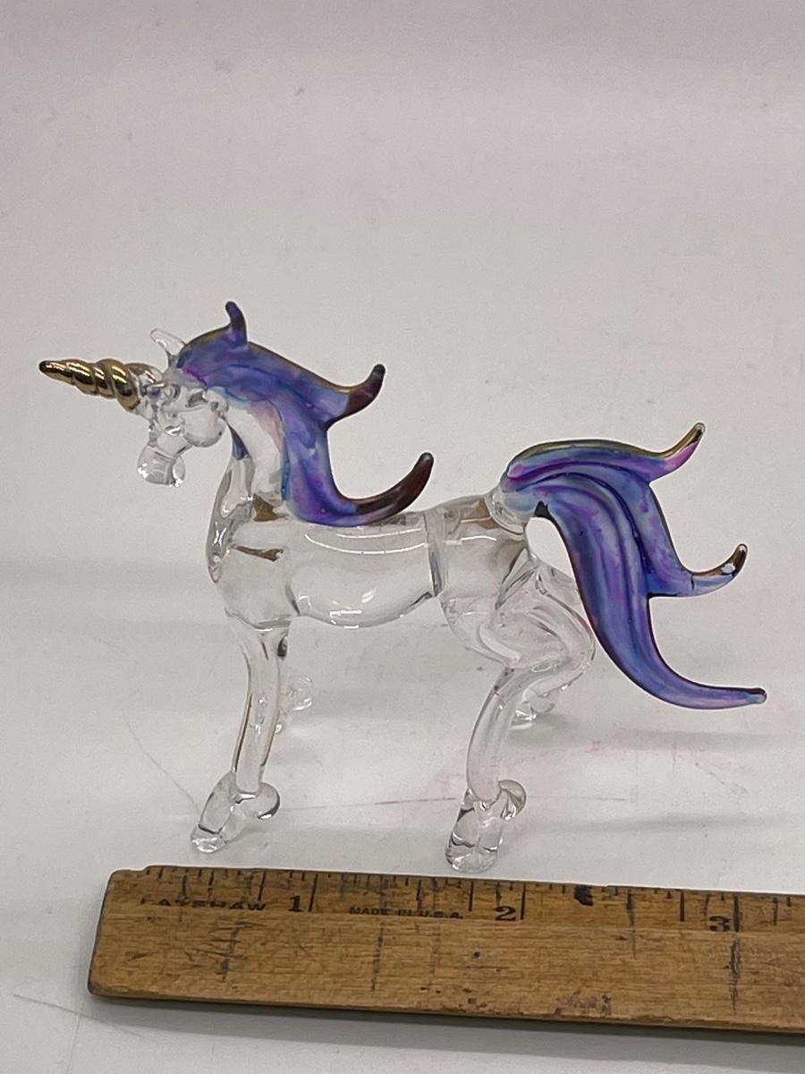 Art Glass Figurine Blown-glass Unicorn purple mane and gold horn