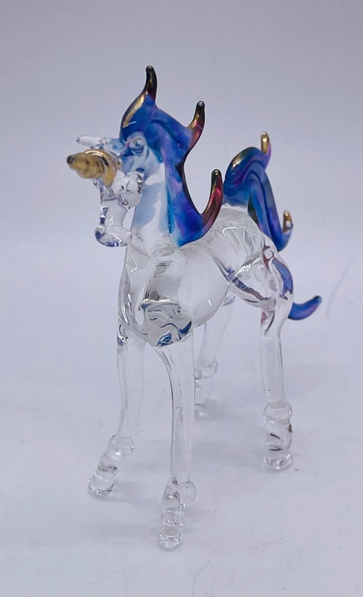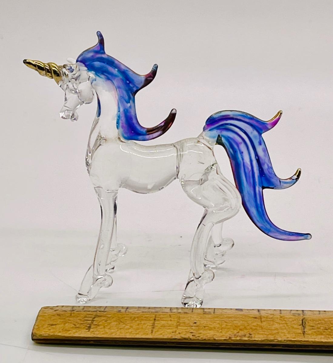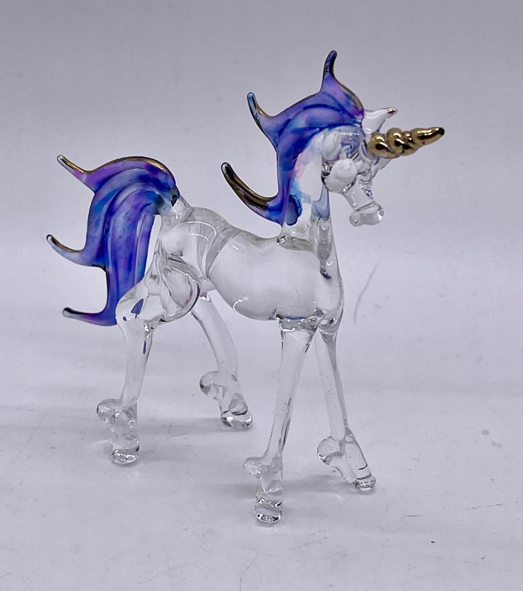 Art Glass Figurine Blown-glass Unicorn purple mane and gold horn
