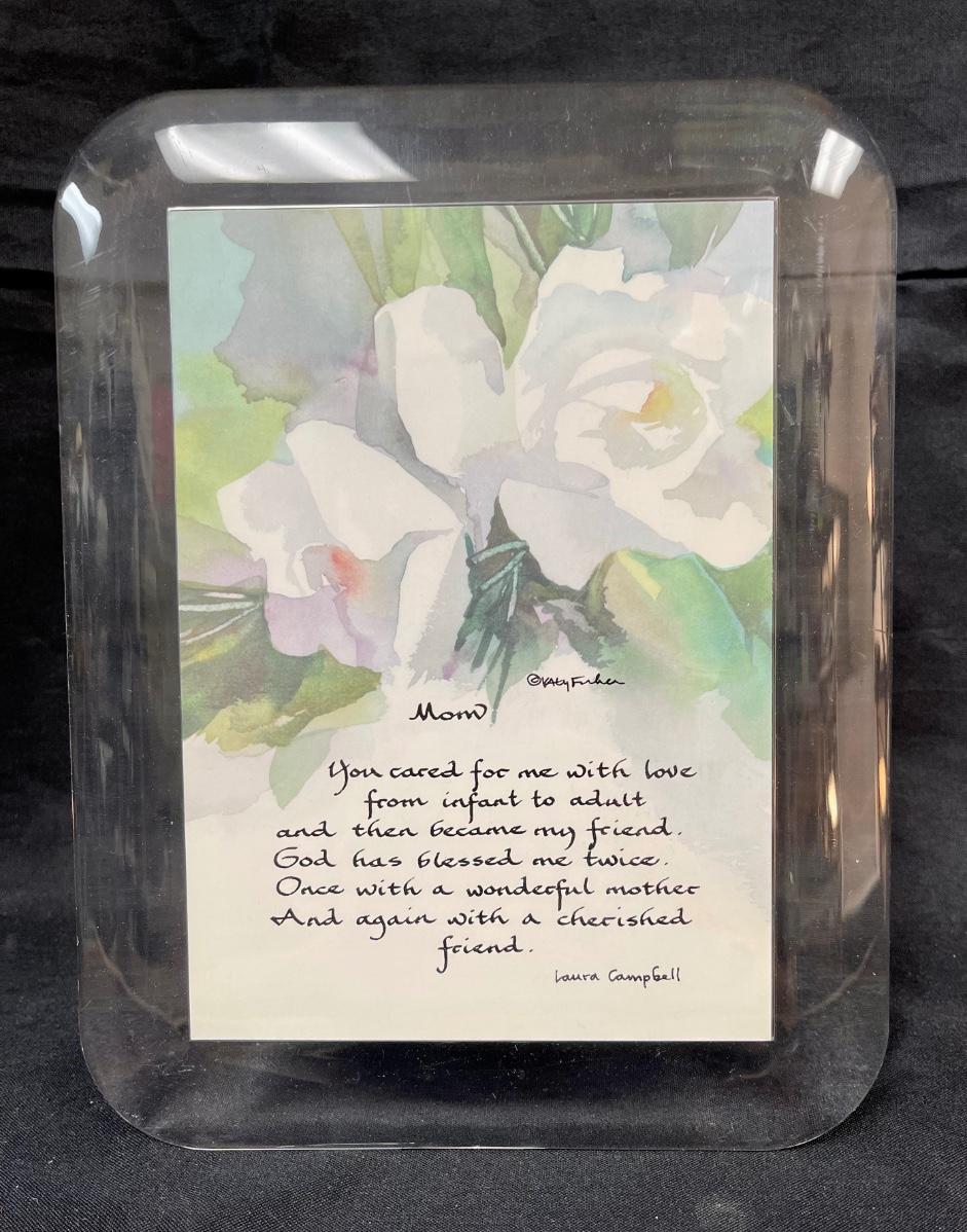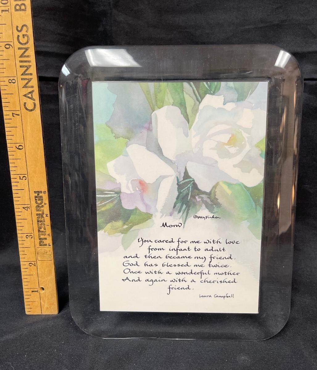 Acrylic frame with "Mom" poem and music box on back