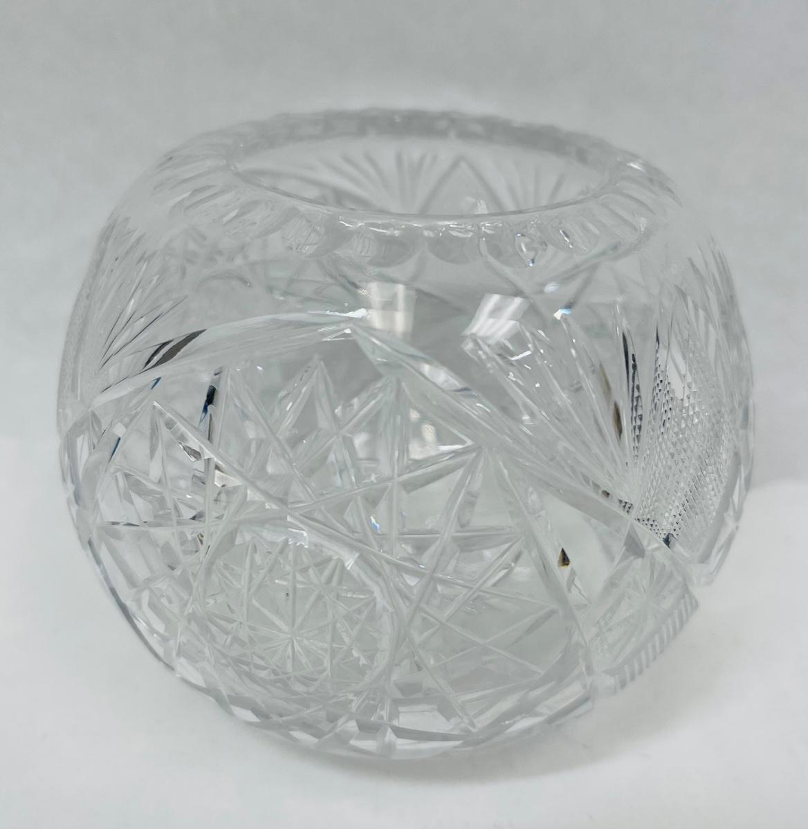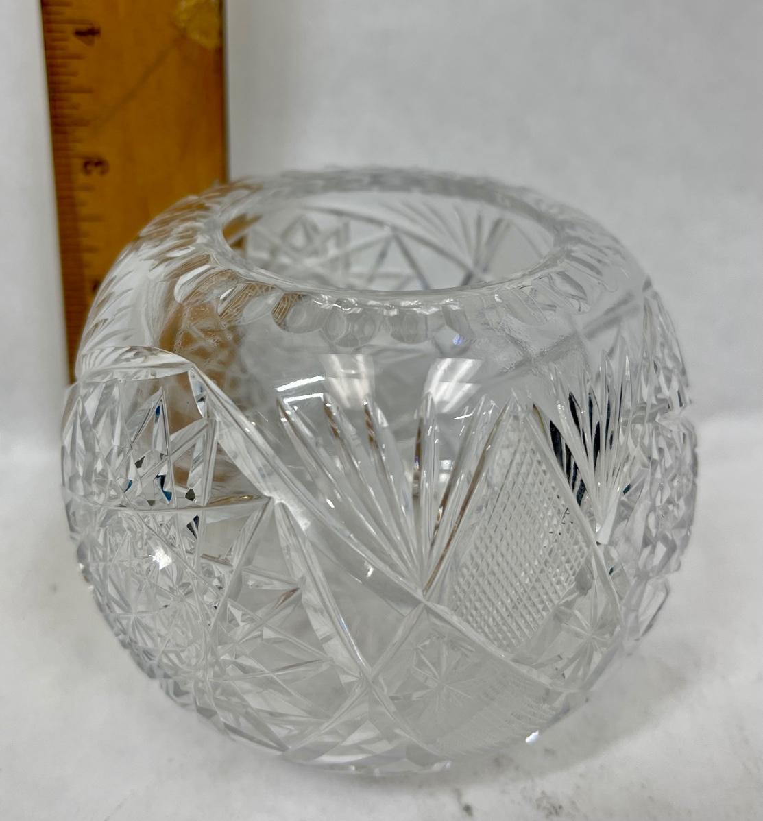 Vintage 4” CRYSTAL Round Vase ROSE BOWL Sphere Globe Glass Starbursts