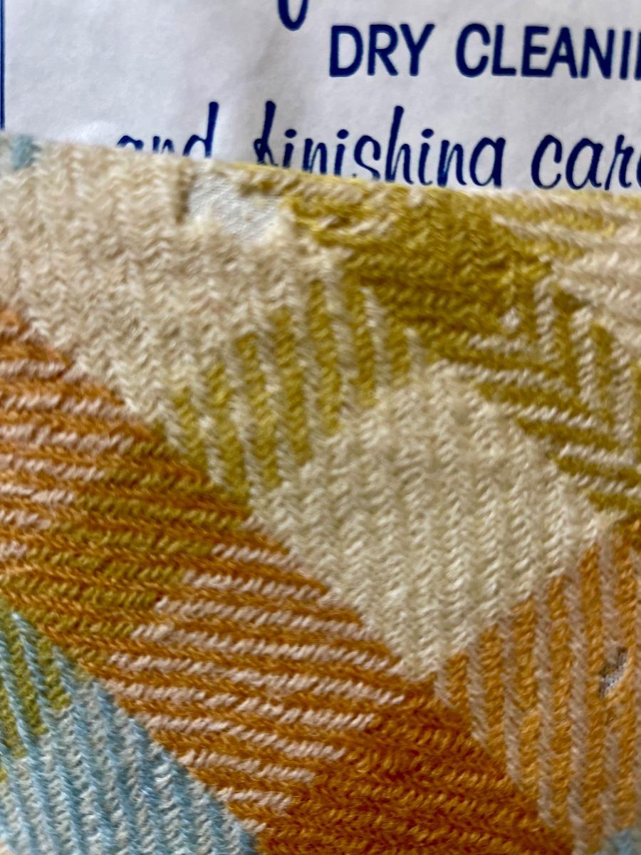 This skirt has many moth holes, but it's cool, so we thought someone might like it. It measures: 28" waist, 22" length.