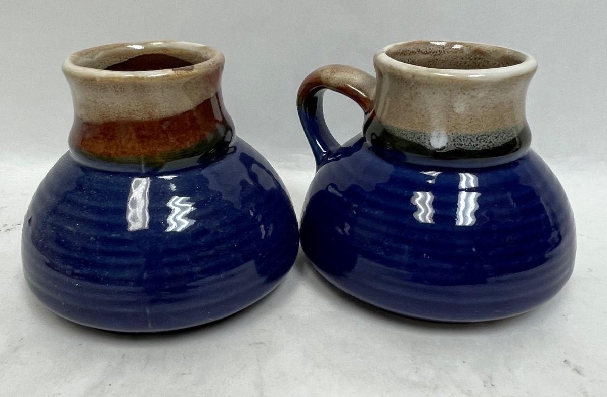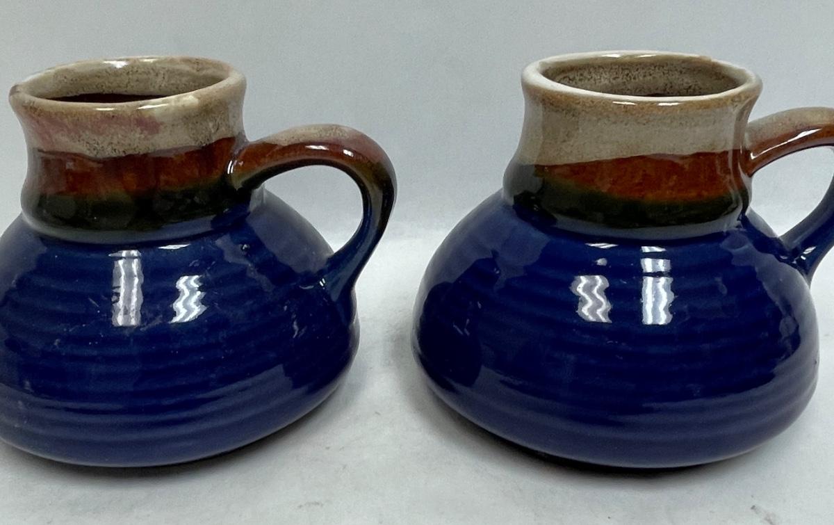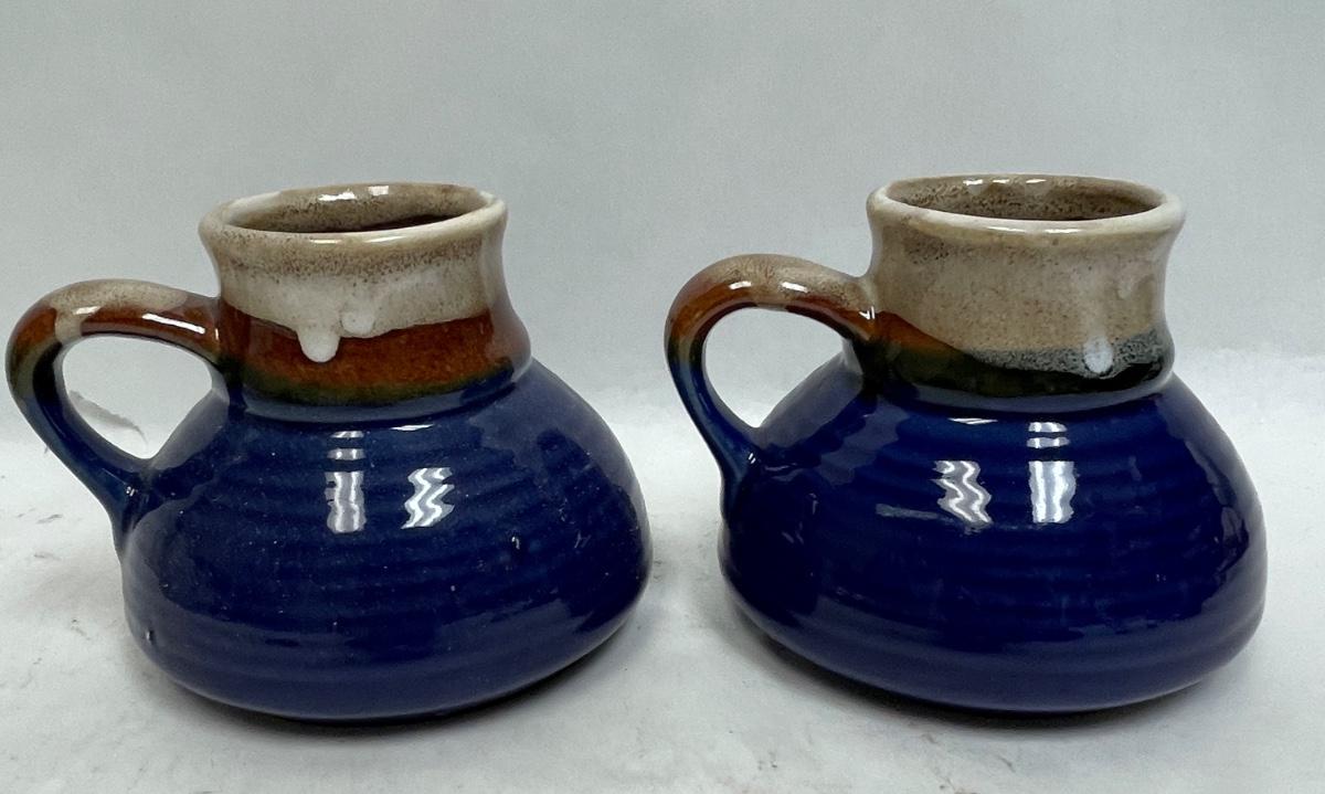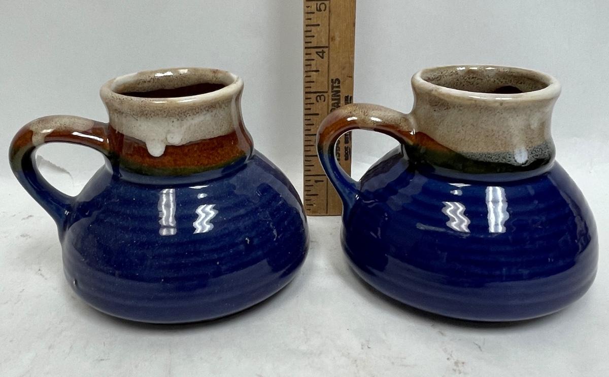 Vintage Navy Blue and Brown Glazed No Tip Mugs