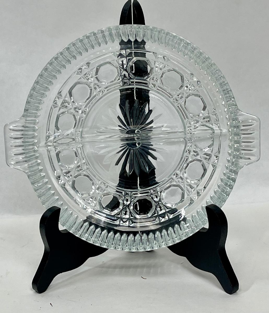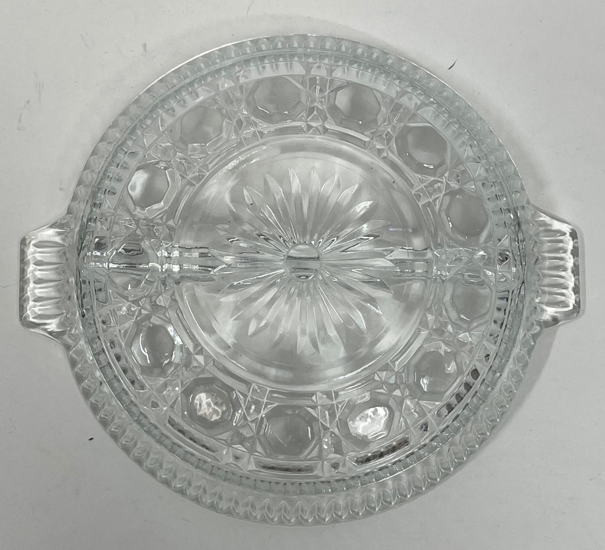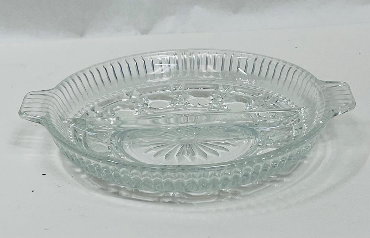 Vintage Indiana Clear Glass Divided Relic Dish with handles