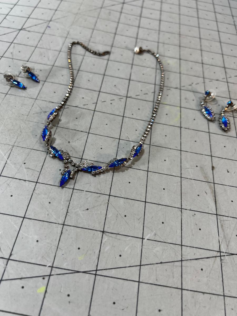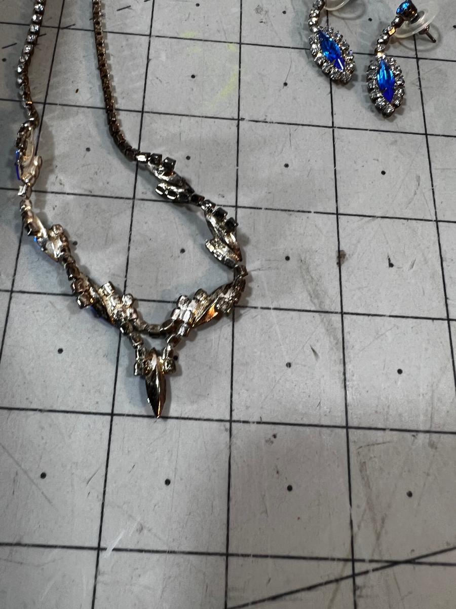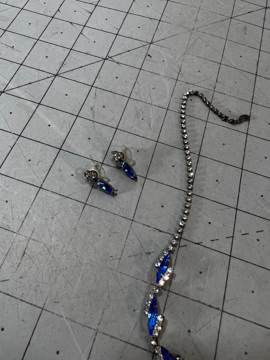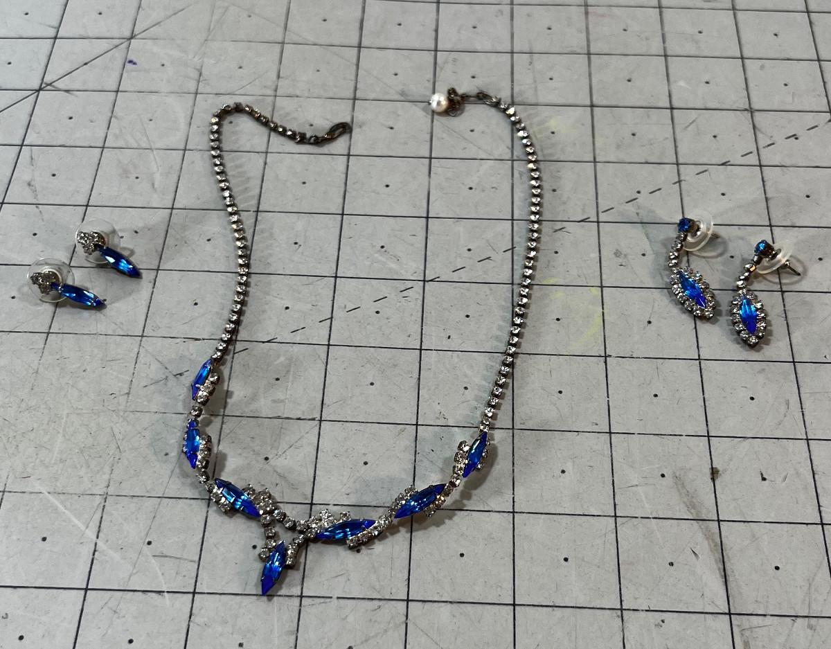 Rhinestone and Sapphire Chocker and Earrings, Set Plus