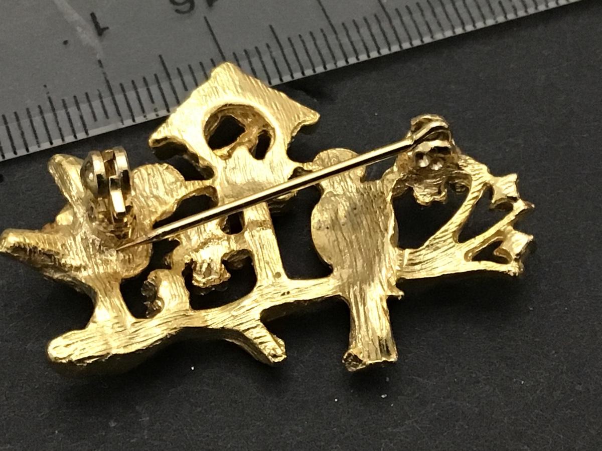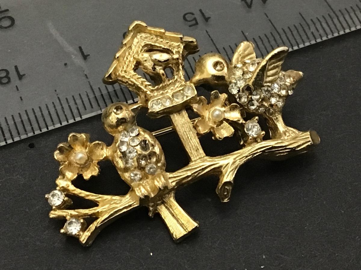 Rhinestone Bird and Birdhouse Pin / Brooch