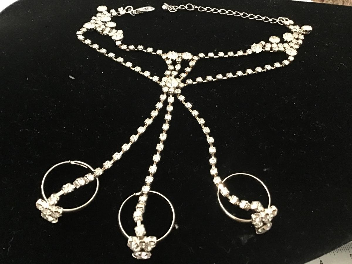 Rhinestone Bracelet With 3 Ring Linked Chain Style