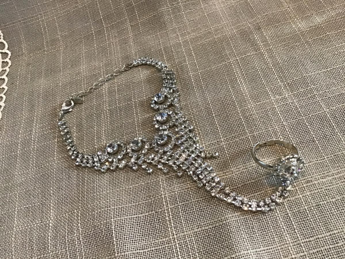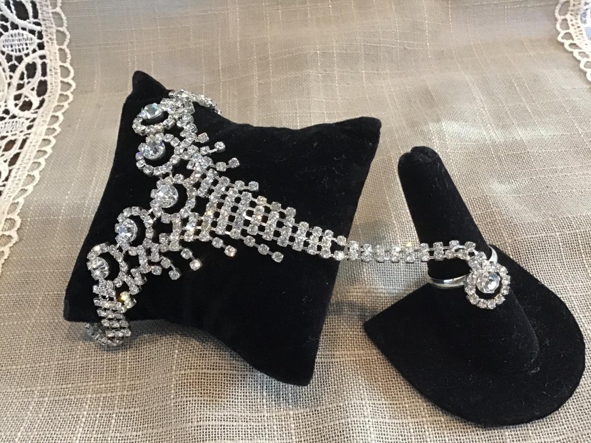 Rhinestone Bracelet with Adjustable Rhinestone Ring