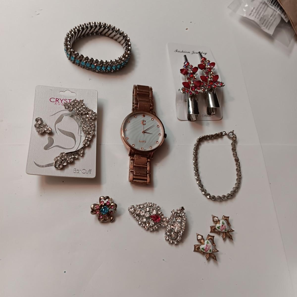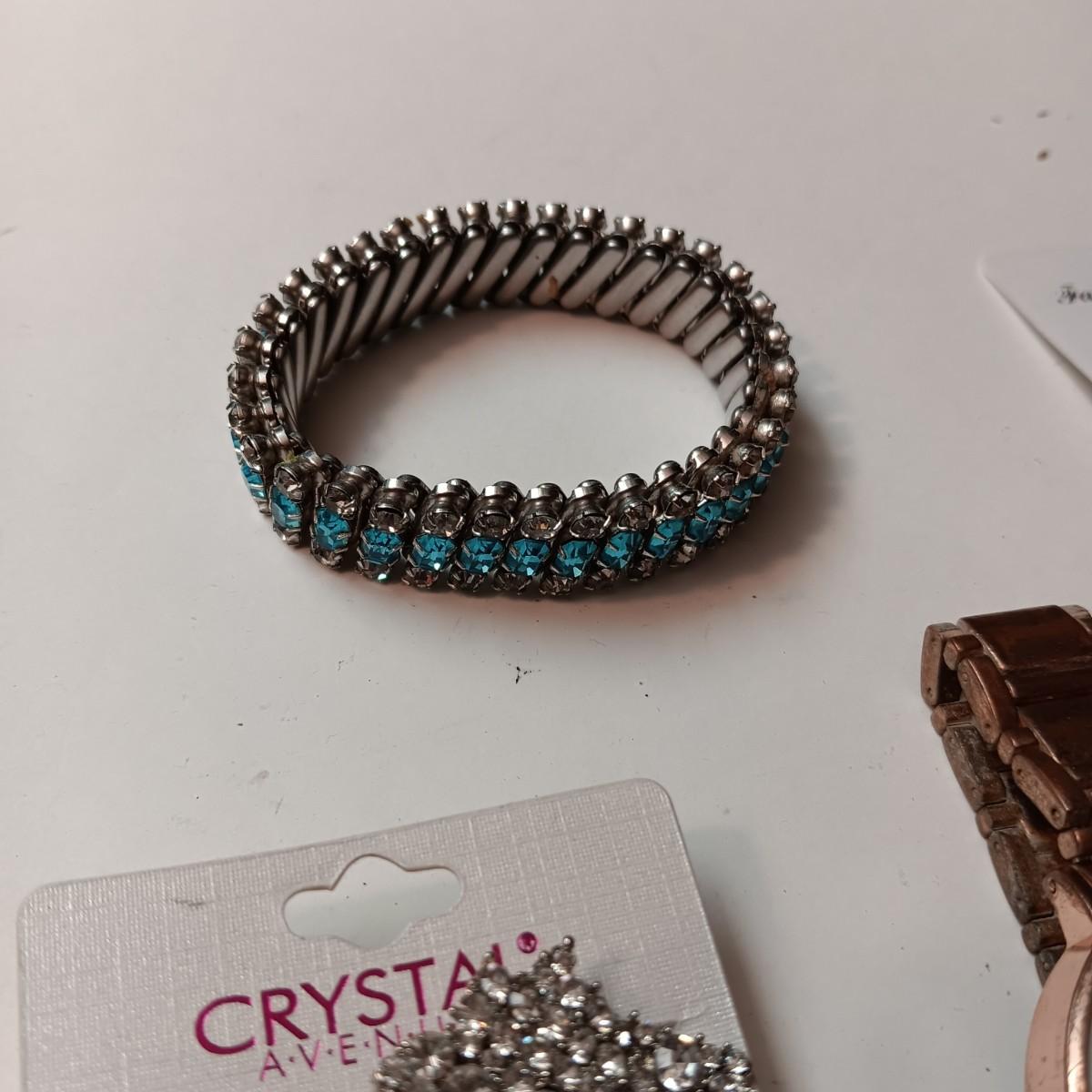 RHINESTONE BRACELETS, BROOCHES, HAIR CLIPS, WATCH AND EARRINGS