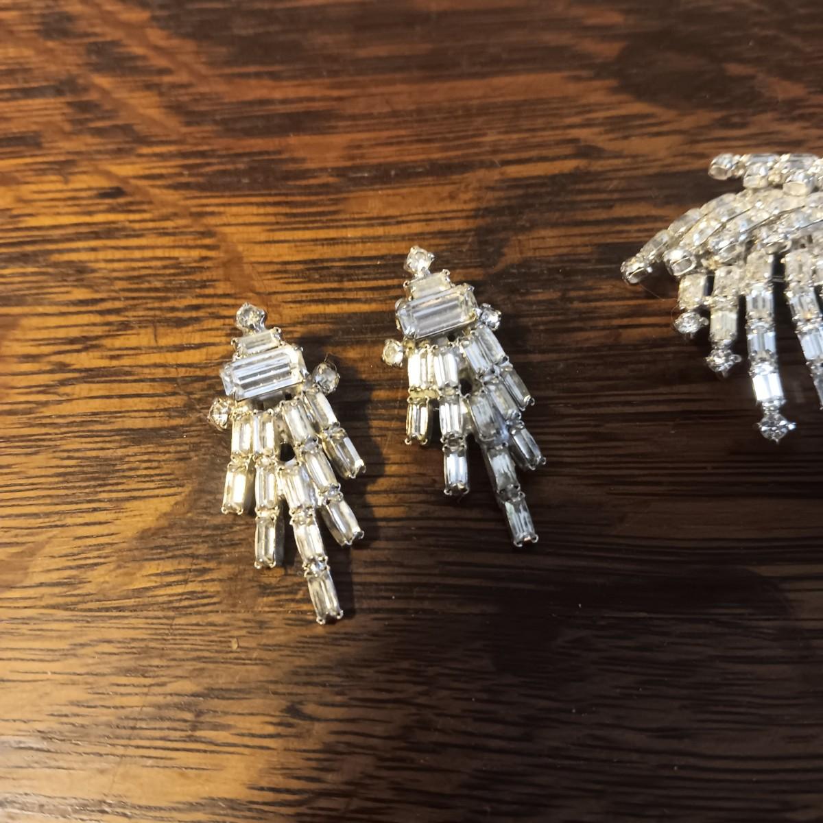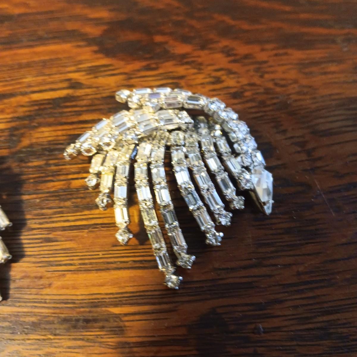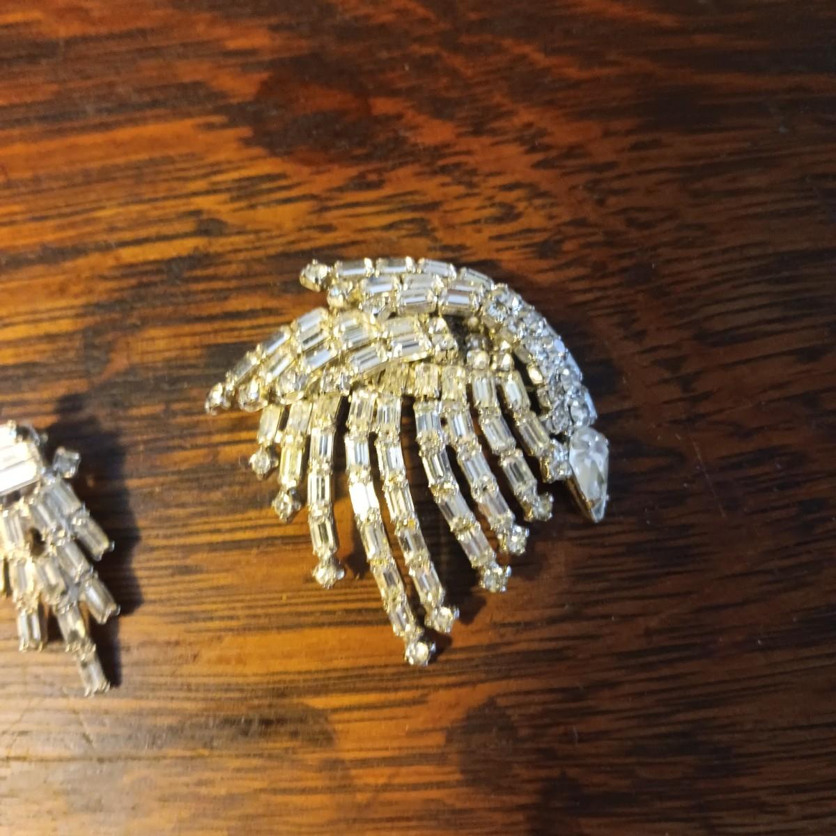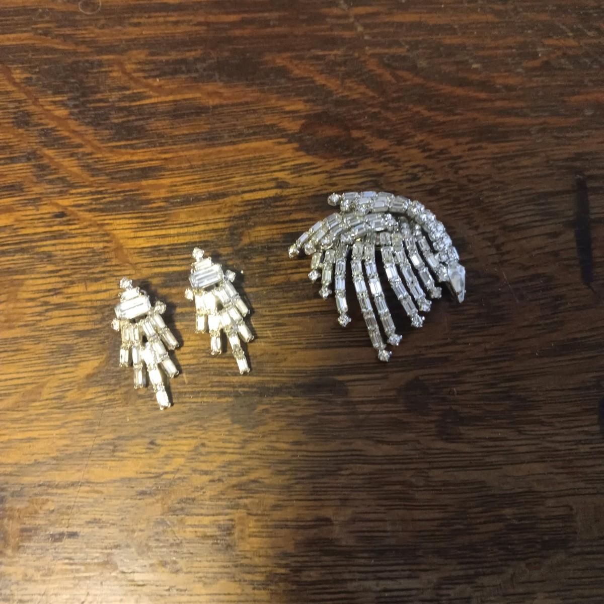 RHINESTONE BROOCH AND CLIP ON EARRINGS