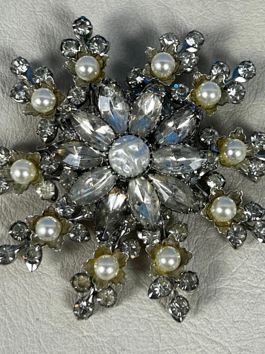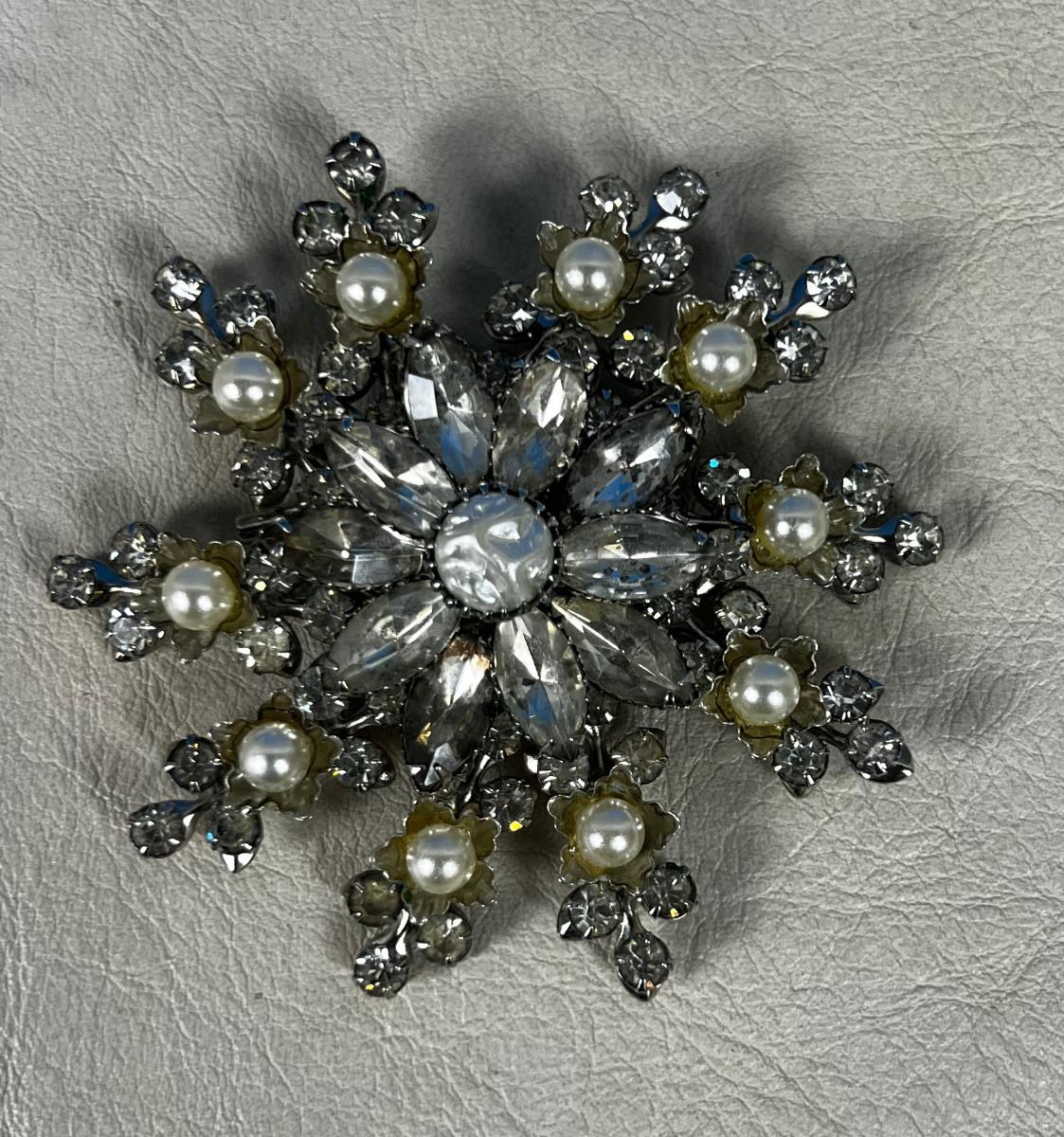 Rhinestone Brooch Snowflake or Crystalline Structure Pin