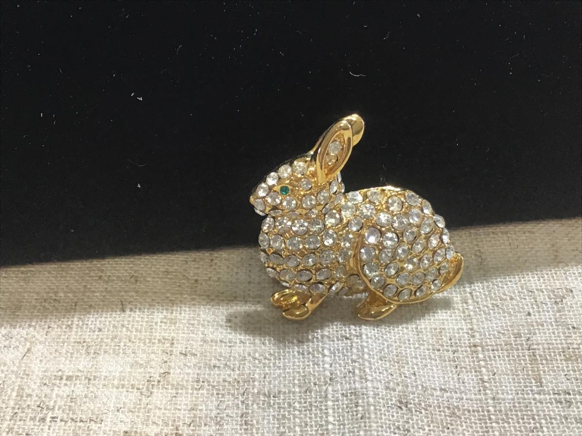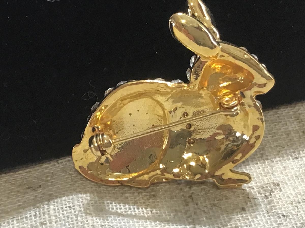 Rhinestone Bunny Rabbit Brooch. Gold tone