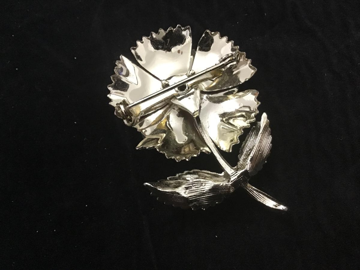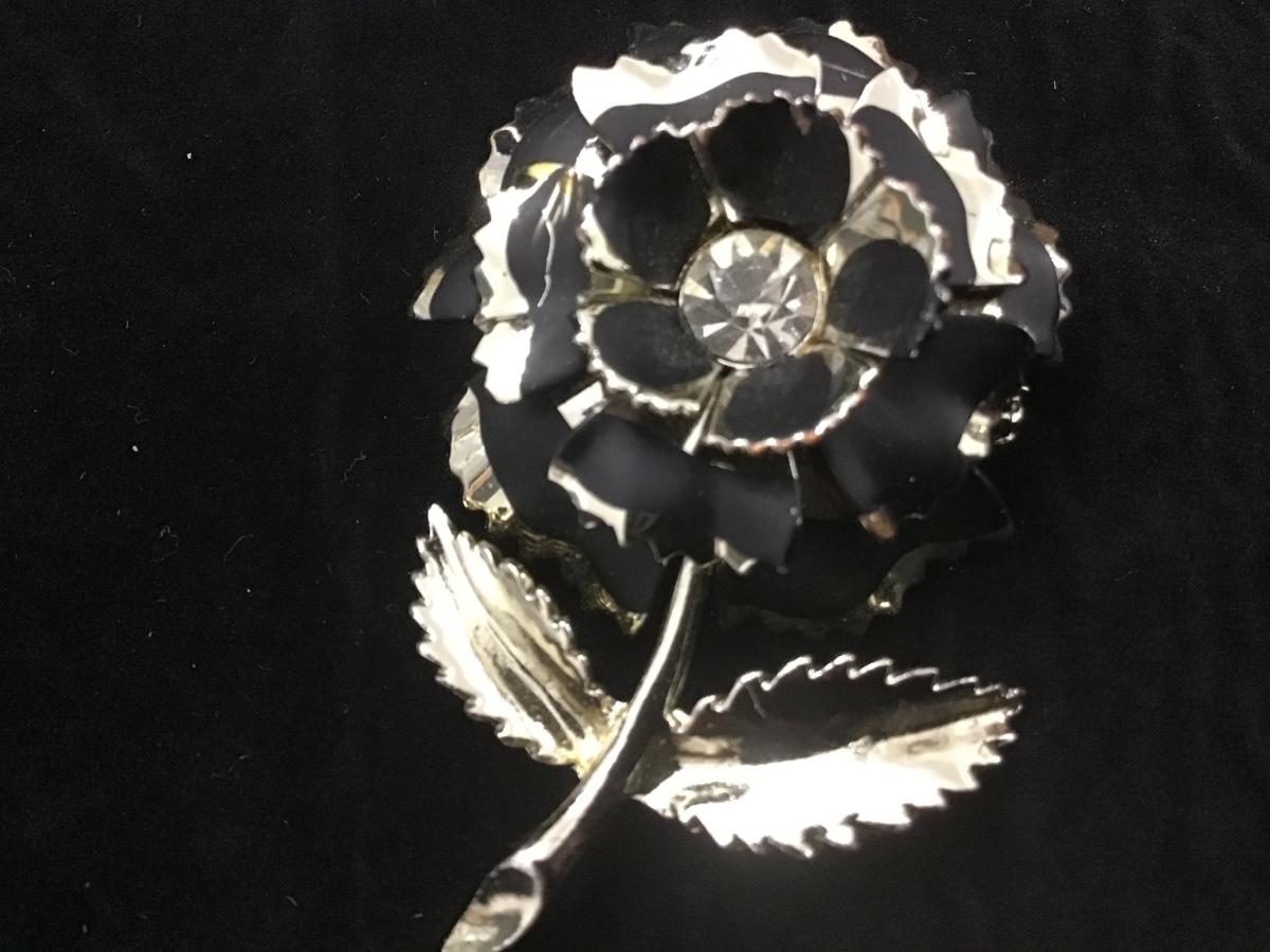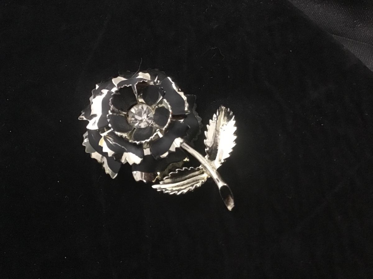 RHINESTONE FLOWER …Black Enamel and Silver Metal…Colorful Center Rhinestone