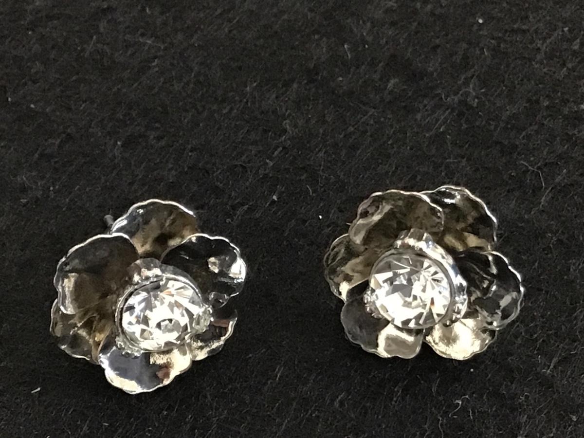 Rhinestone Flower Silver Tone Earrings