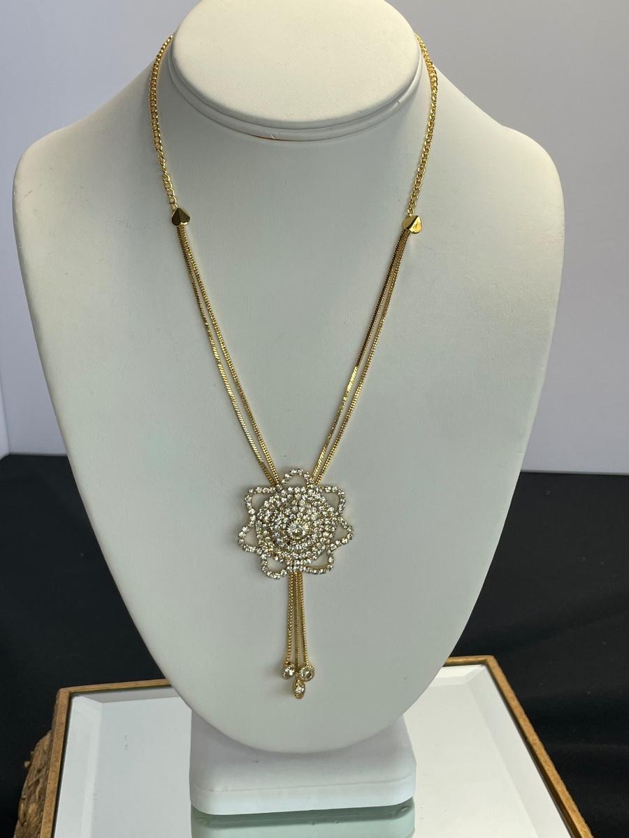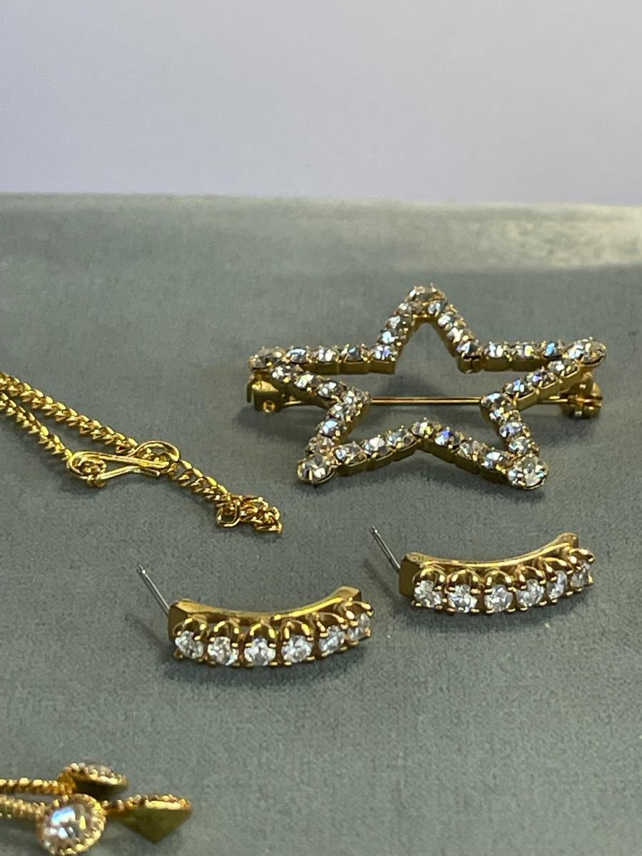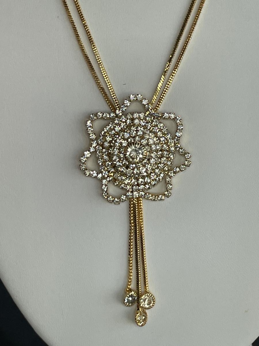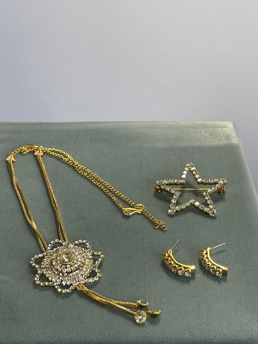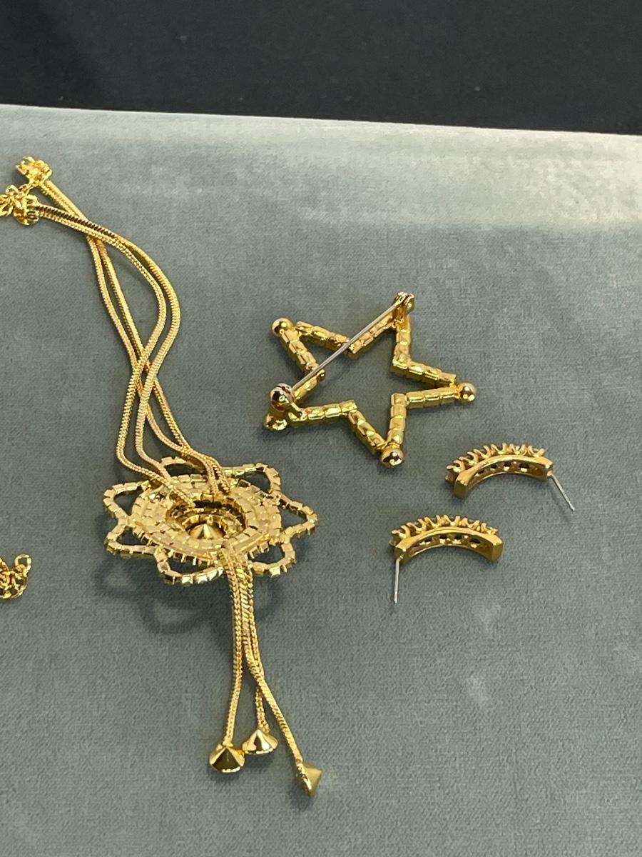 3 pieces, necklace, pin and pierced earrings (missing clutches).