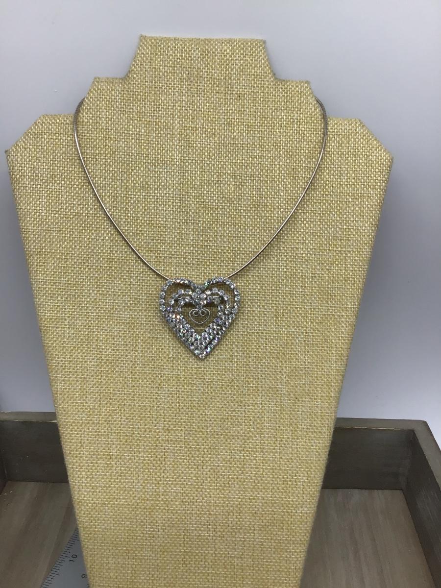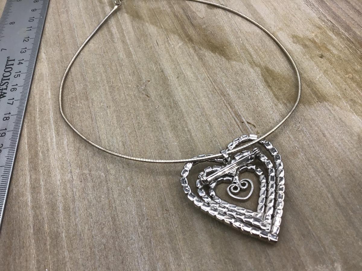 Rhinestone Heart Pendant or Brooch 925 Necklace