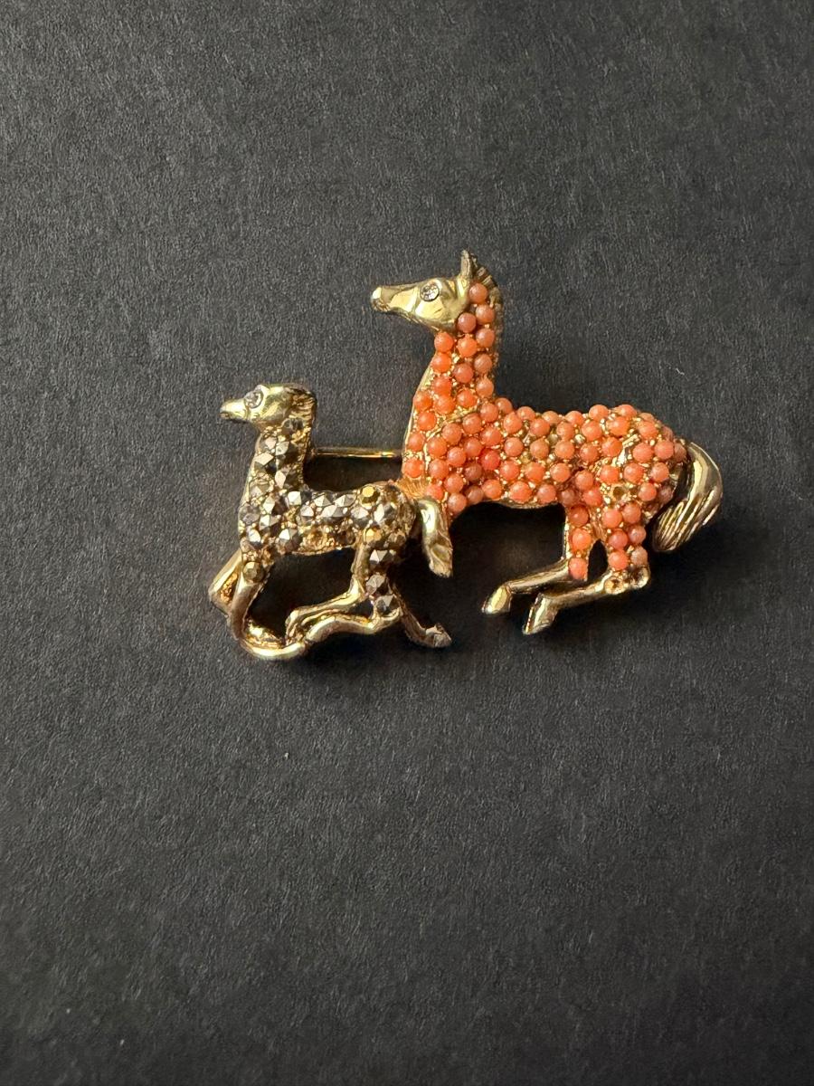 Rhinestone horse brooch