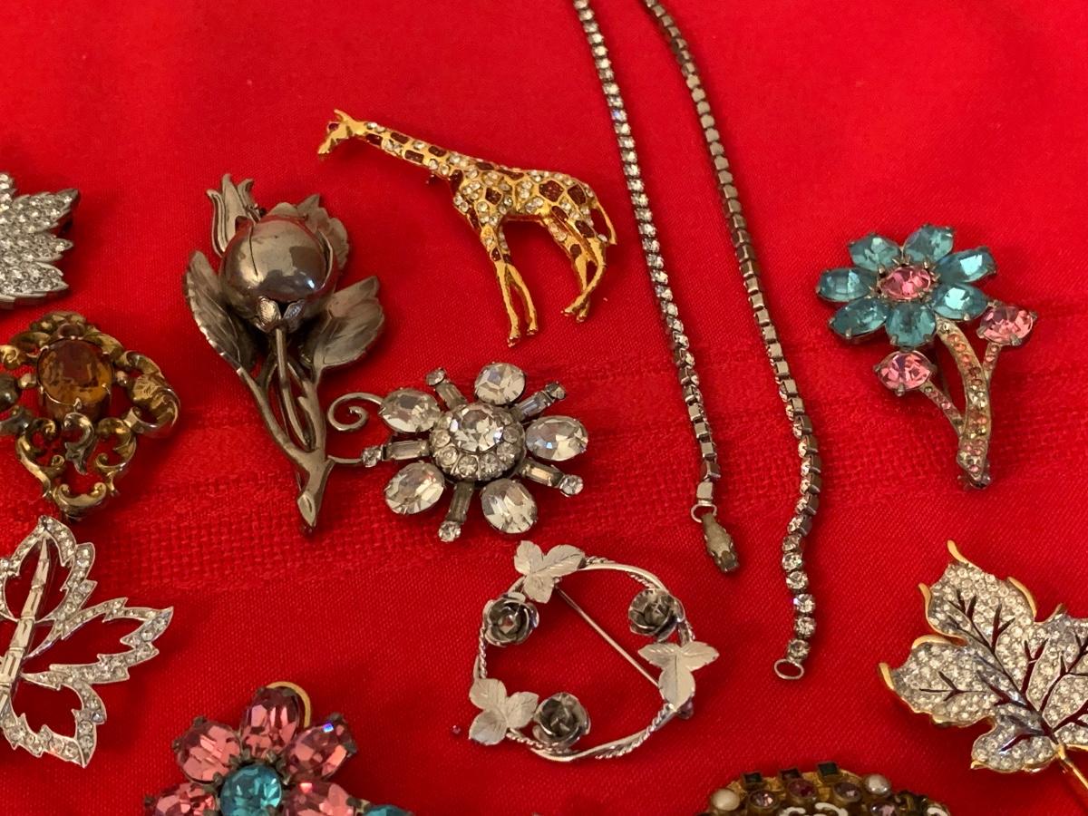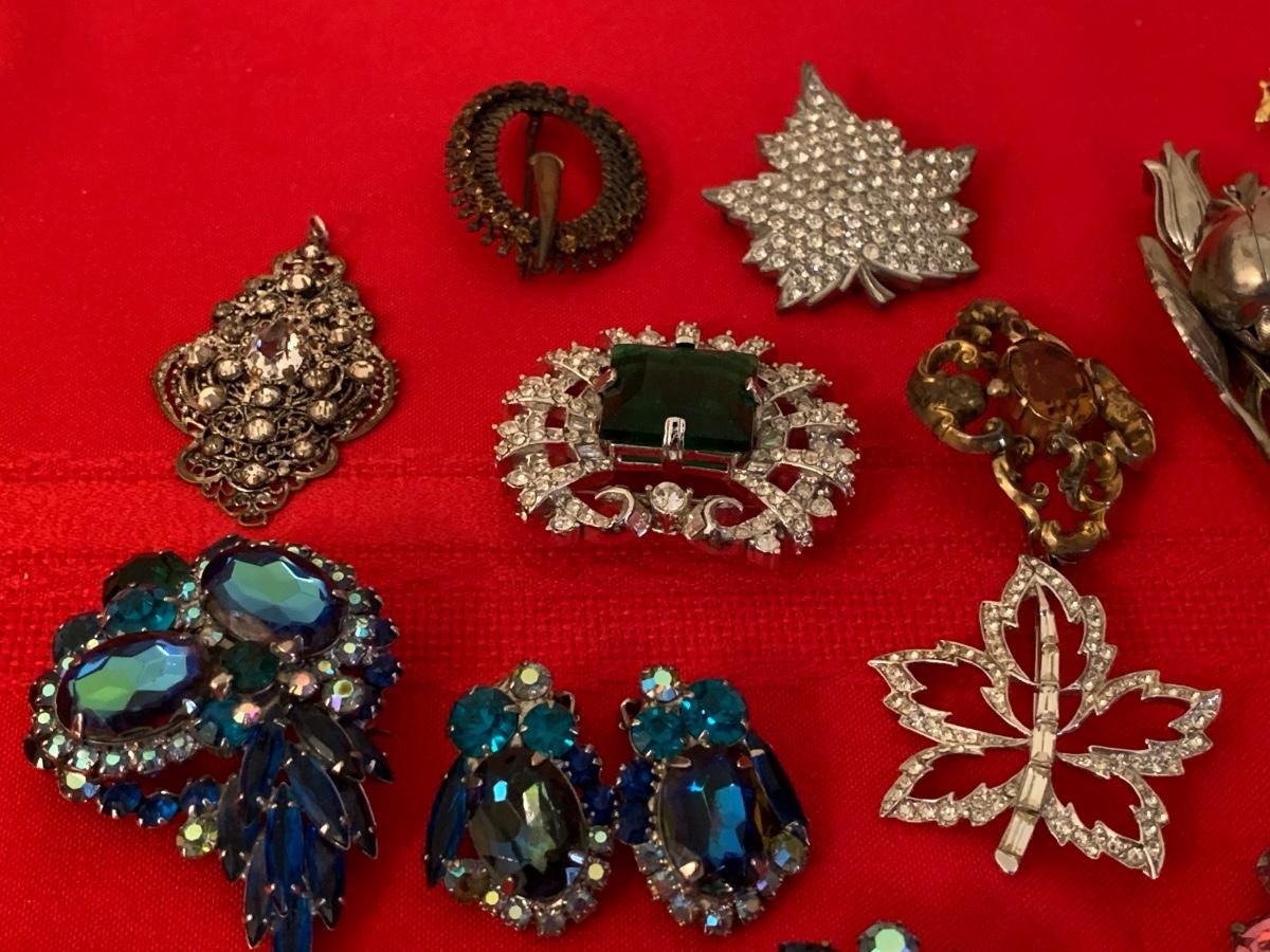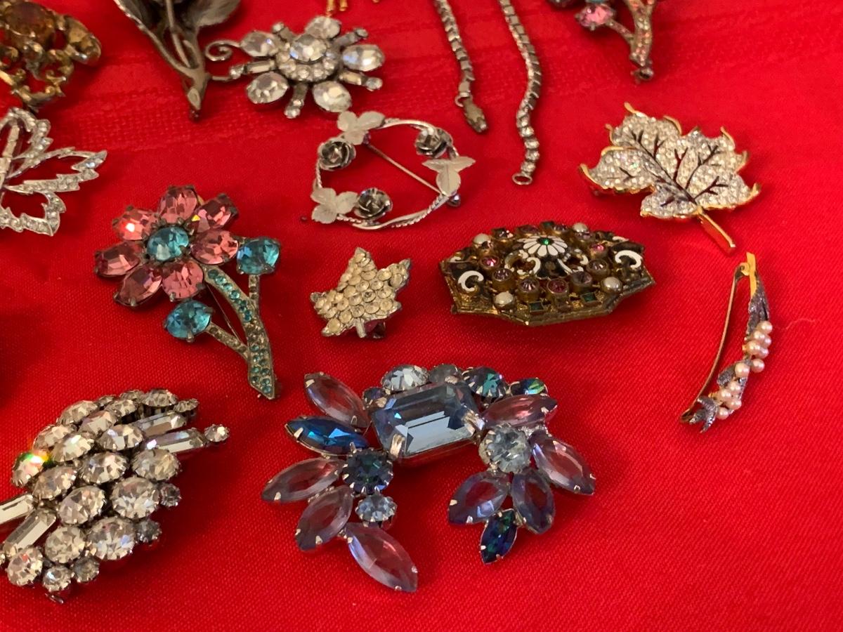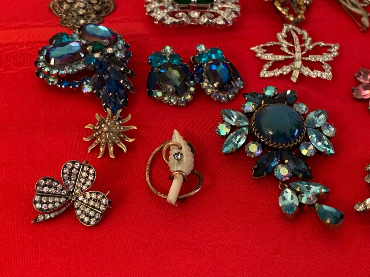 Lot full of vintage and antique jewelry with rhinestones and sparkles.