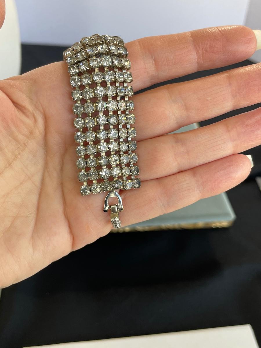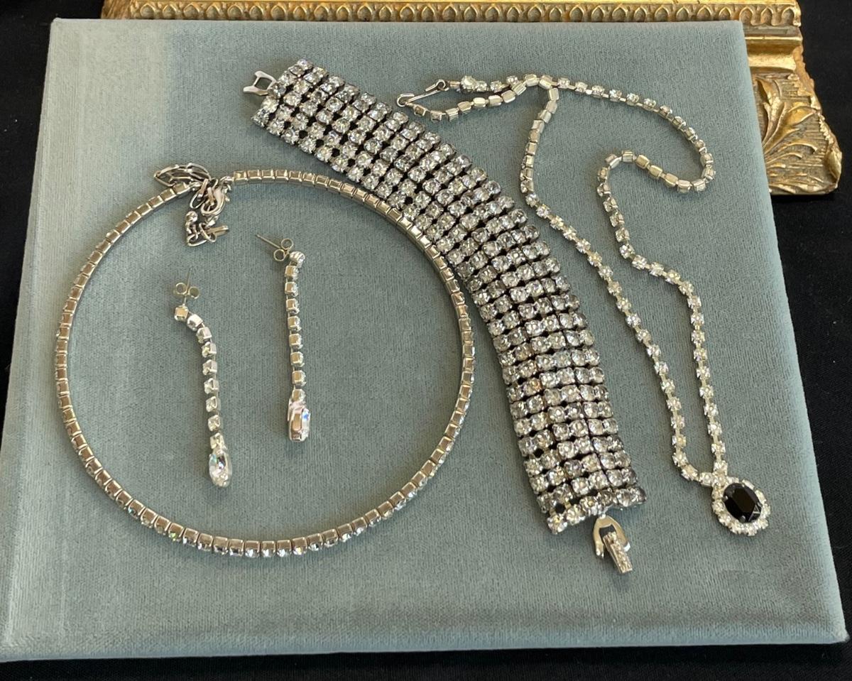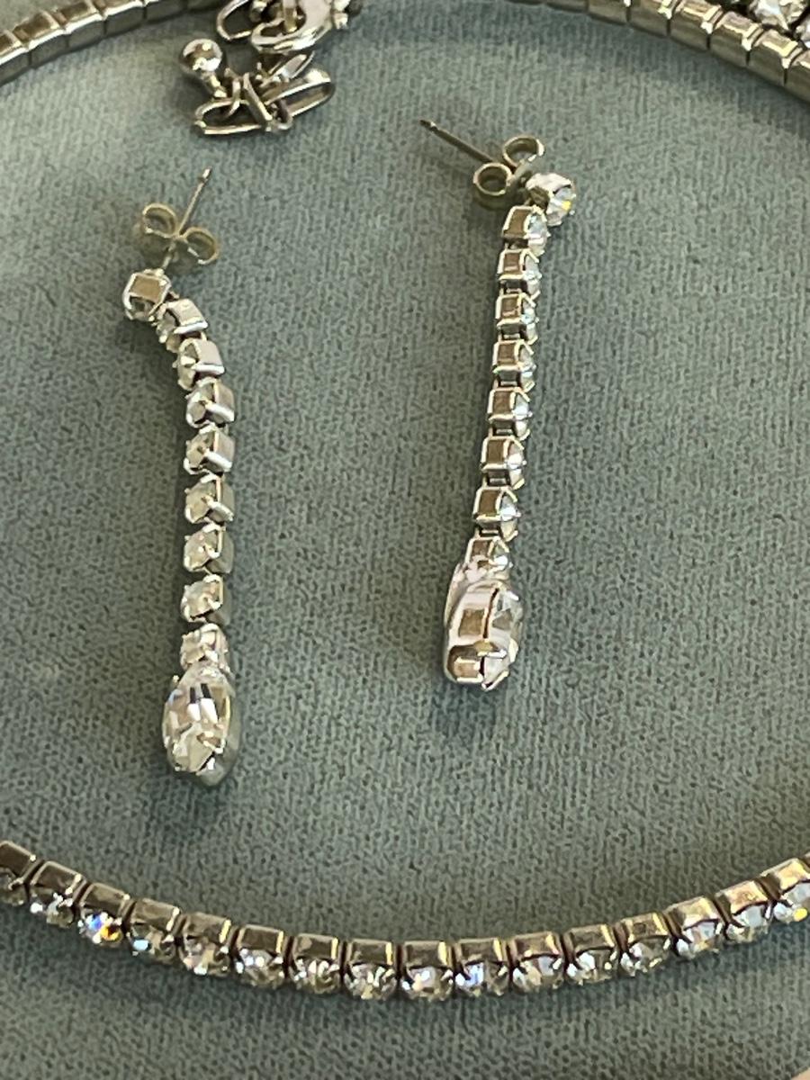 Choker, vintage bracelet is 7 1/4’”, newer necklace and pierced earrings.