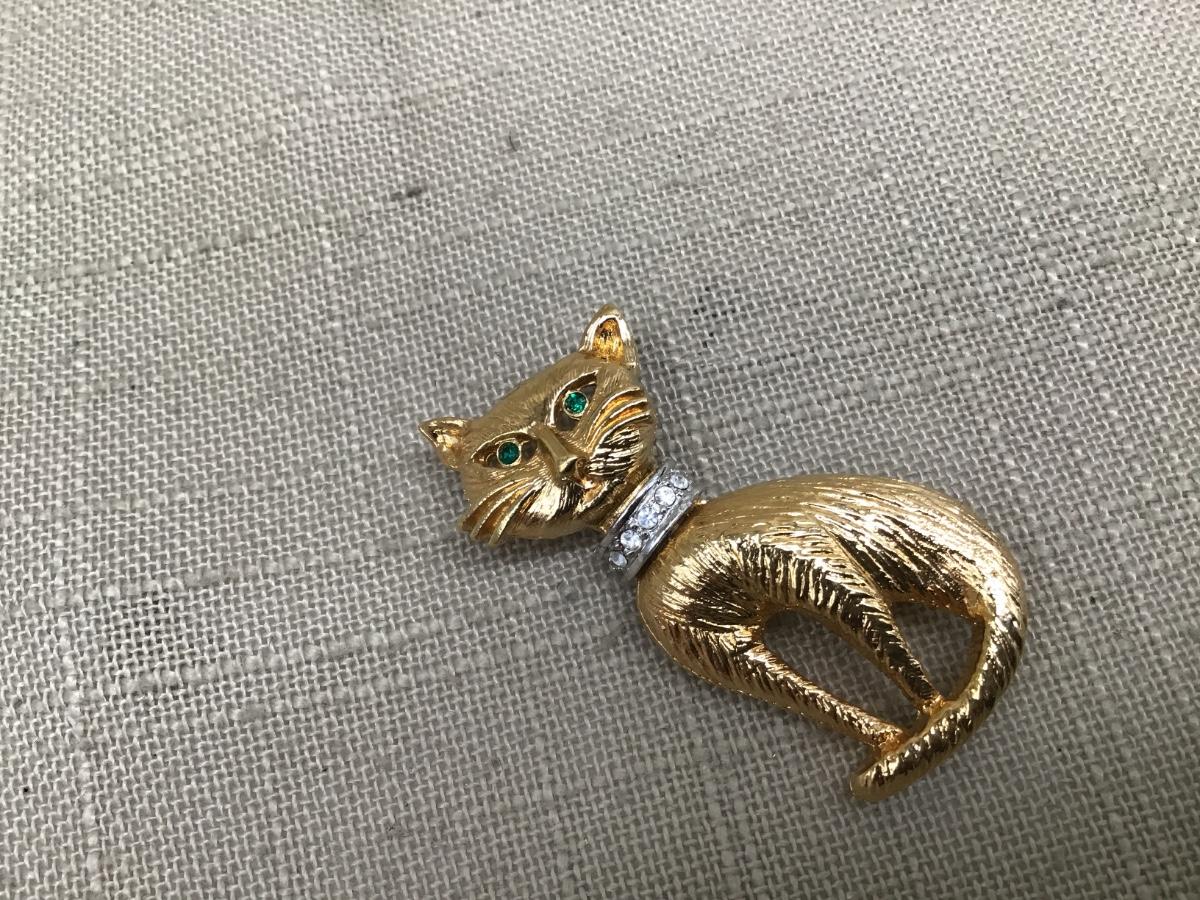 Rhinestone Kitty Brooch