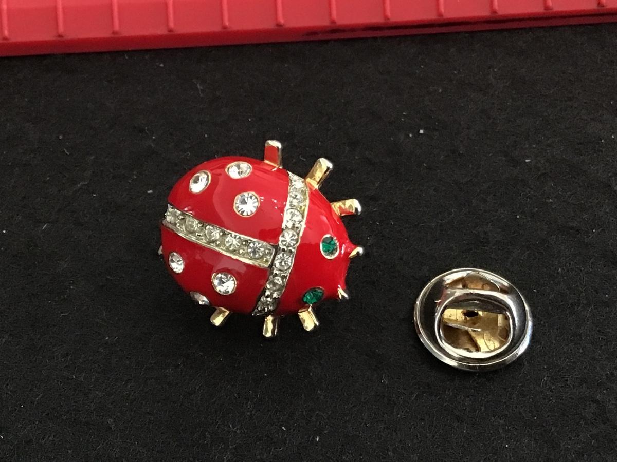 Rhinestone Ladybug Pin Red Enamel