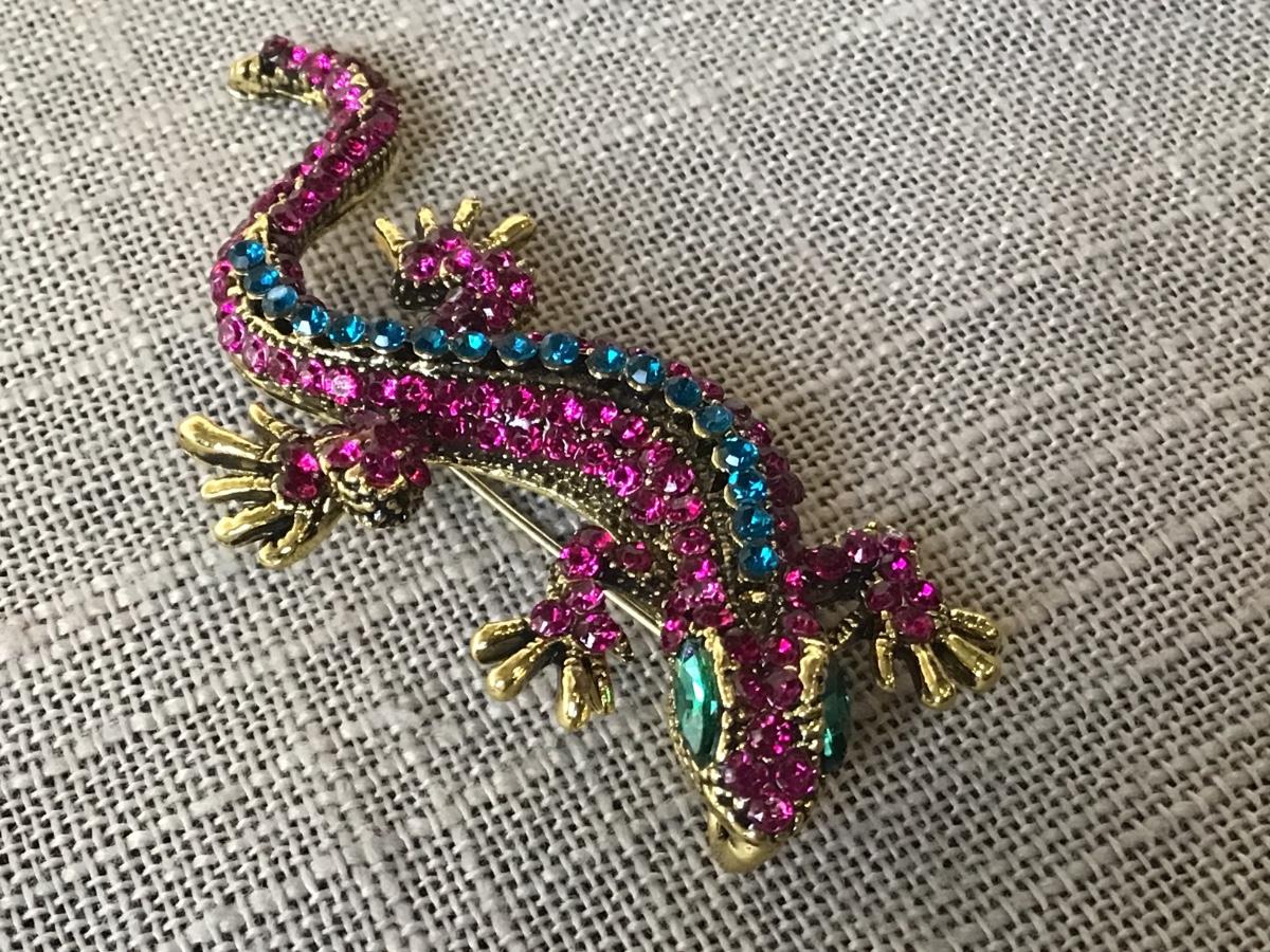 Rhinestone Lizard Pin