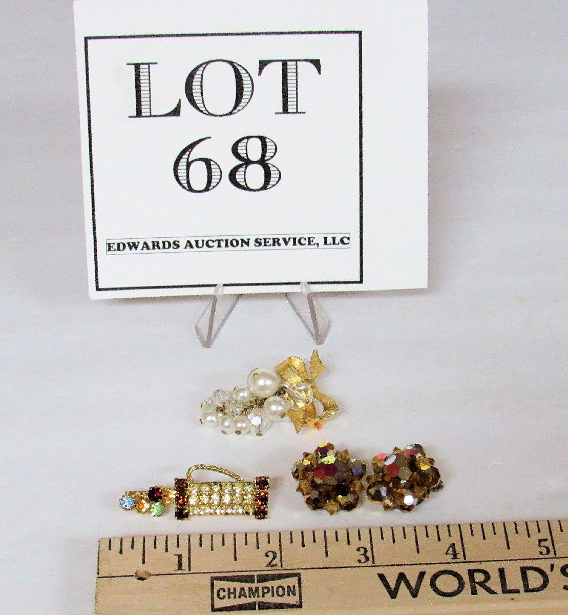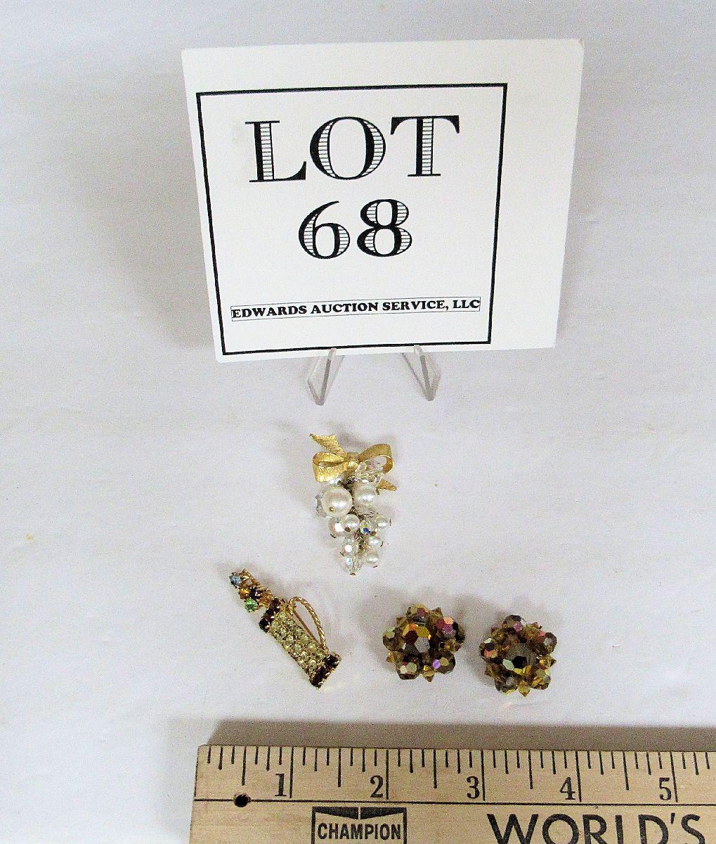Rhinestone Lot, Golf Bag Pin, Dangly Pin, AB Earrings