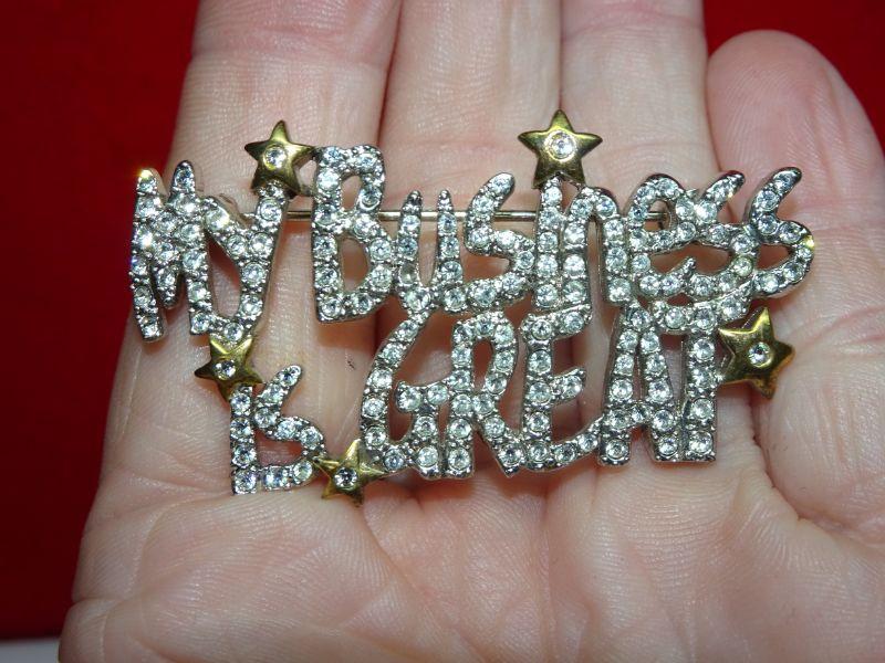 Rhinestone "My Business is Great" Brooch, Pin