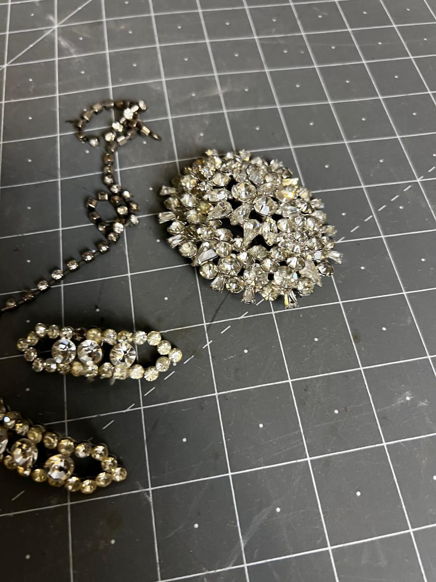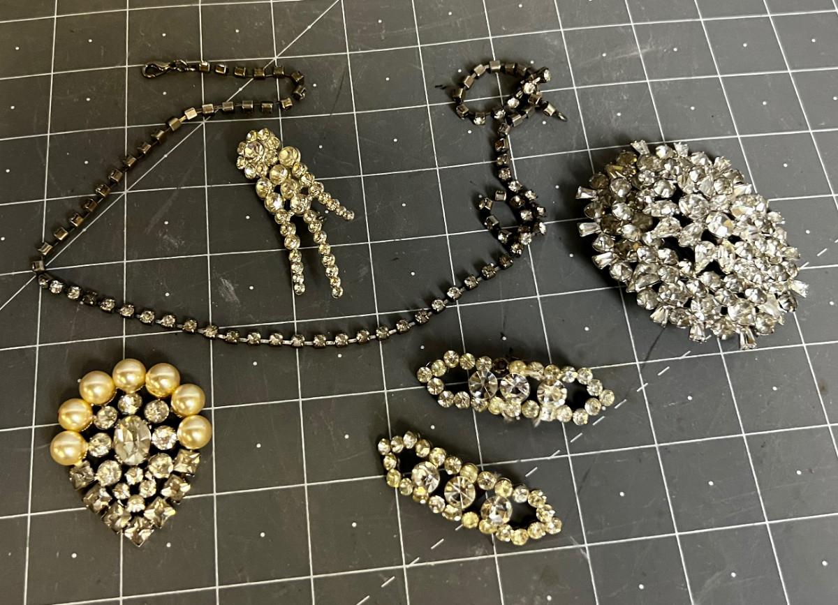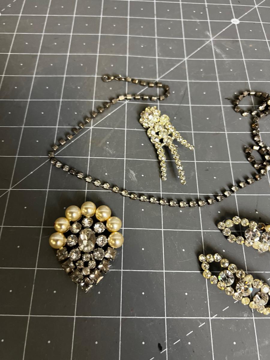 Rhinestone Necklace and Shoe Clip Plus Pins