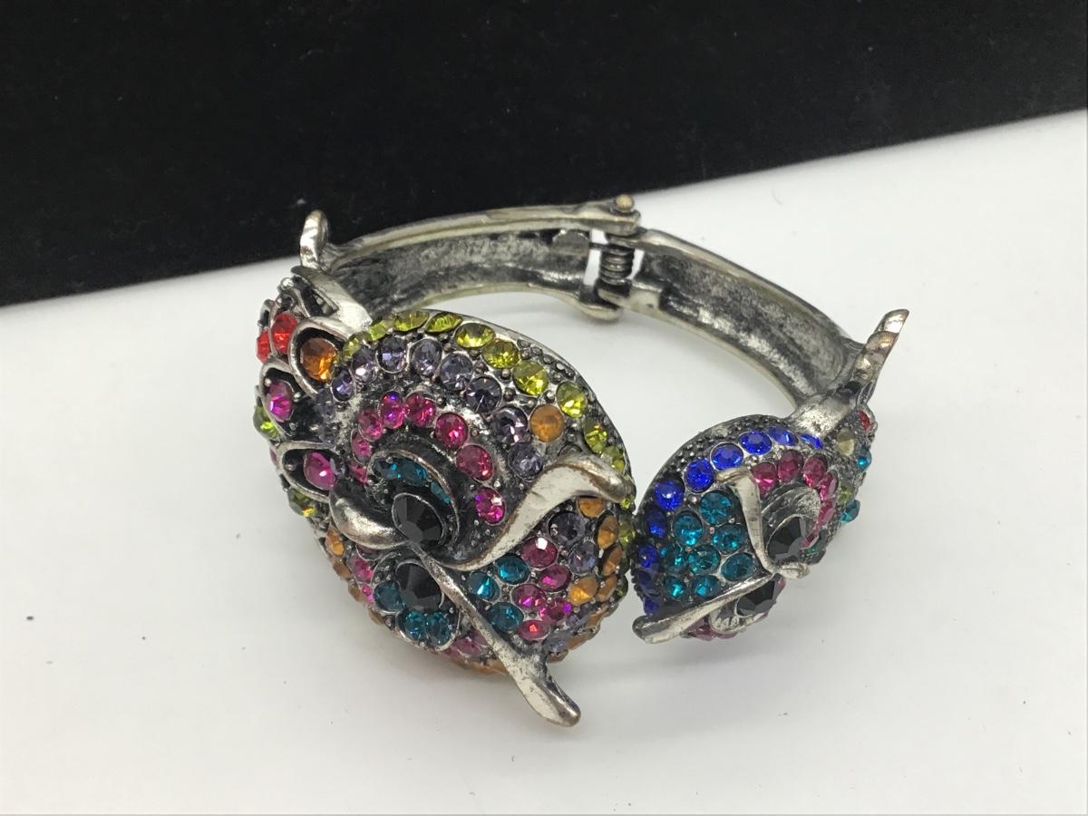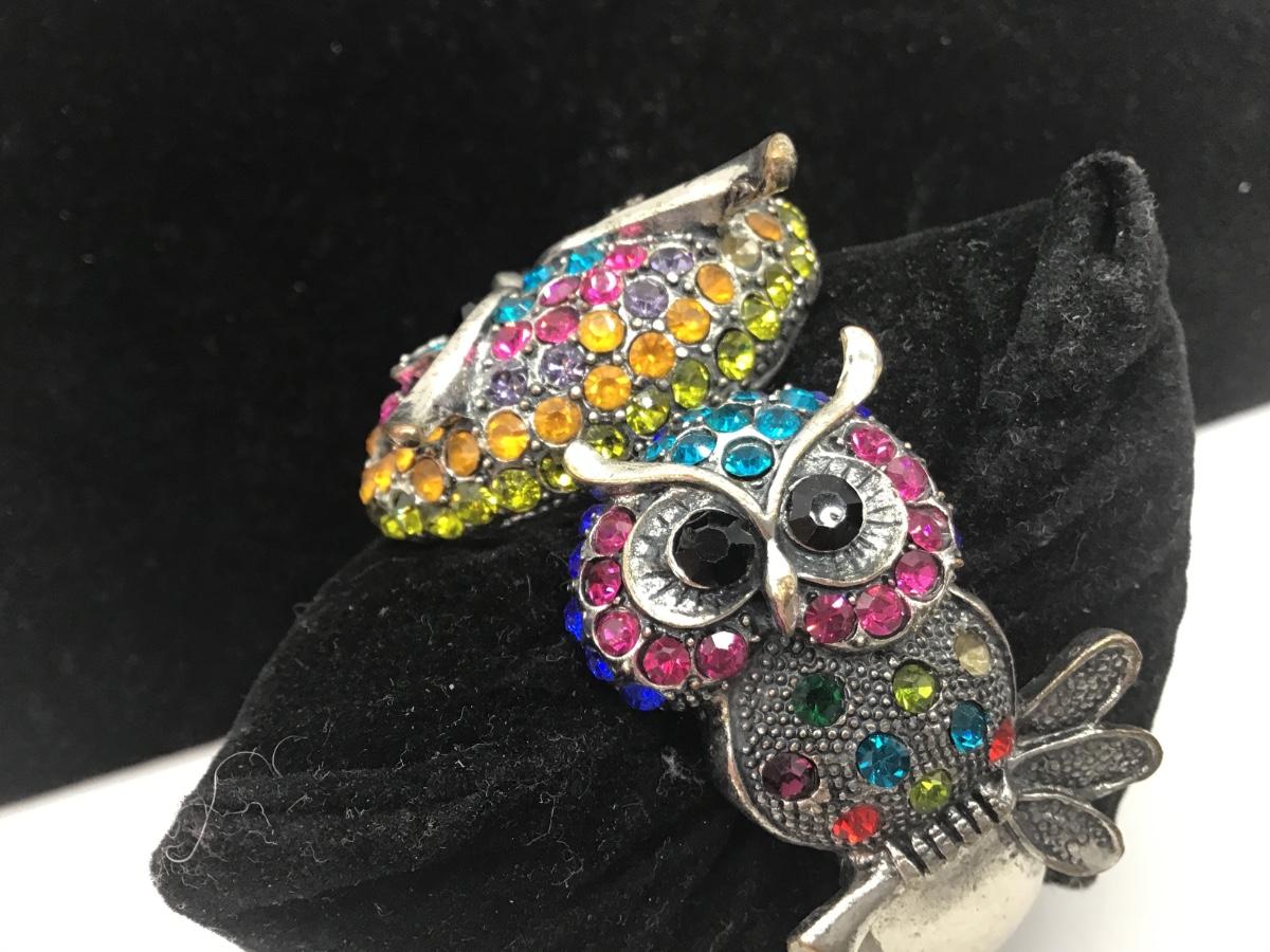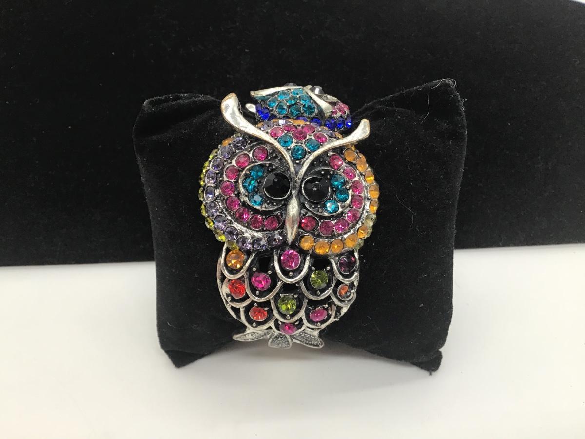 Rhinestone Owl Clamper Bracelet