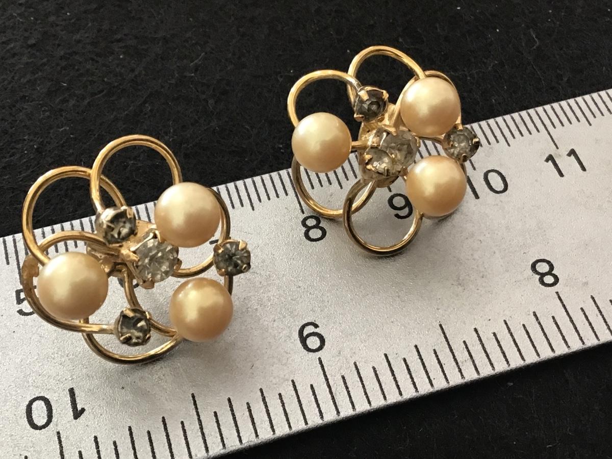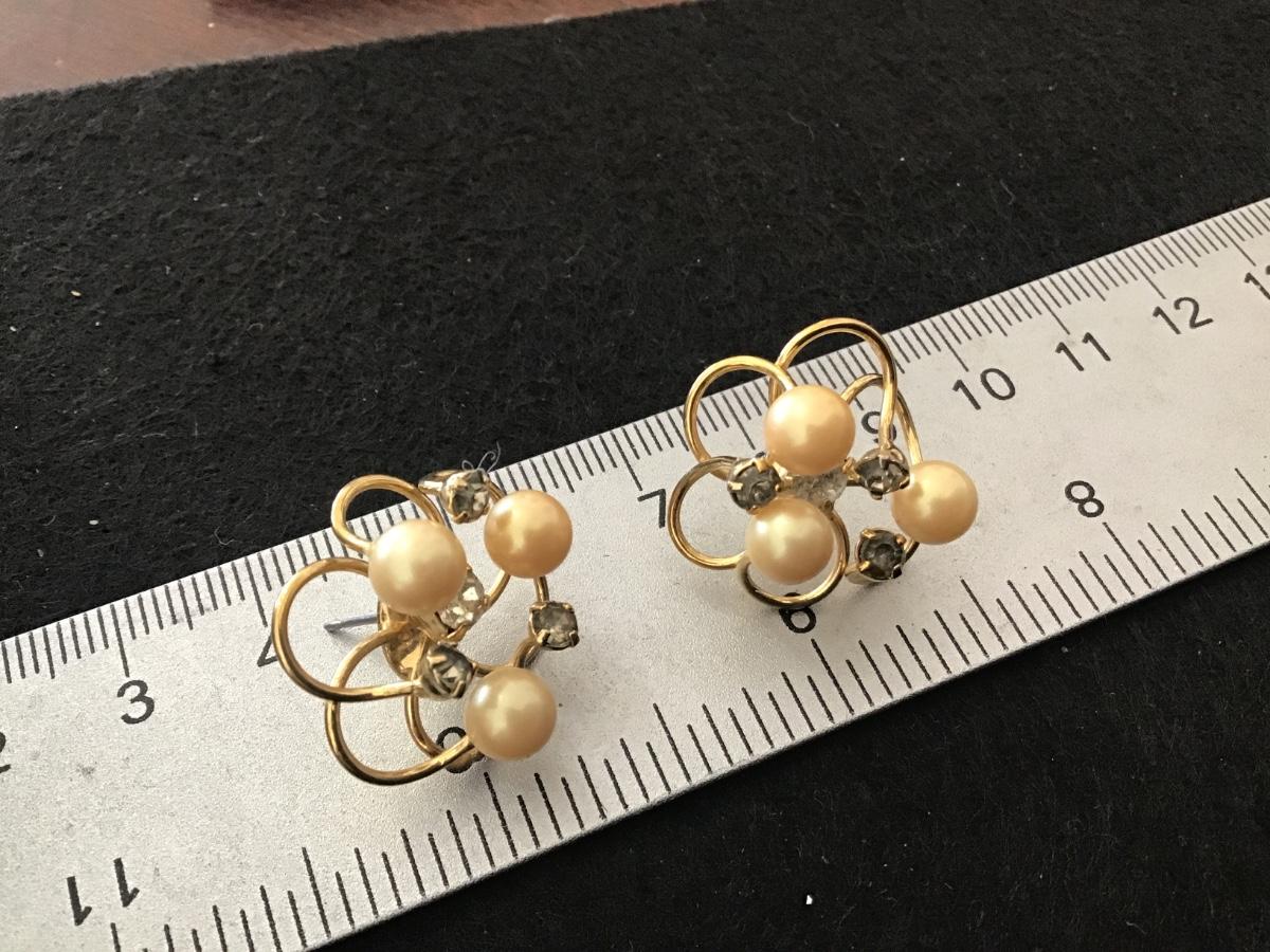 Rhinestone Pearl Gold Tone Vintage Earrings