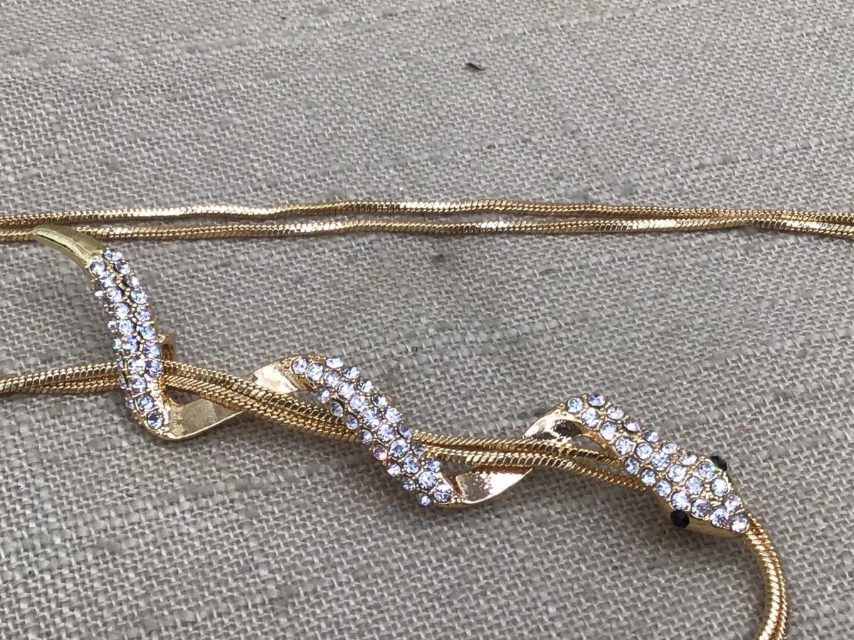 Rhinestone Snake Gold Slider Chain Pendant Necklace