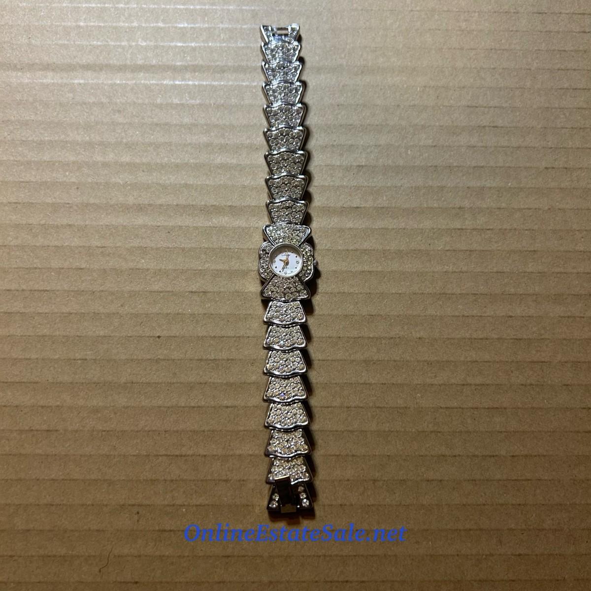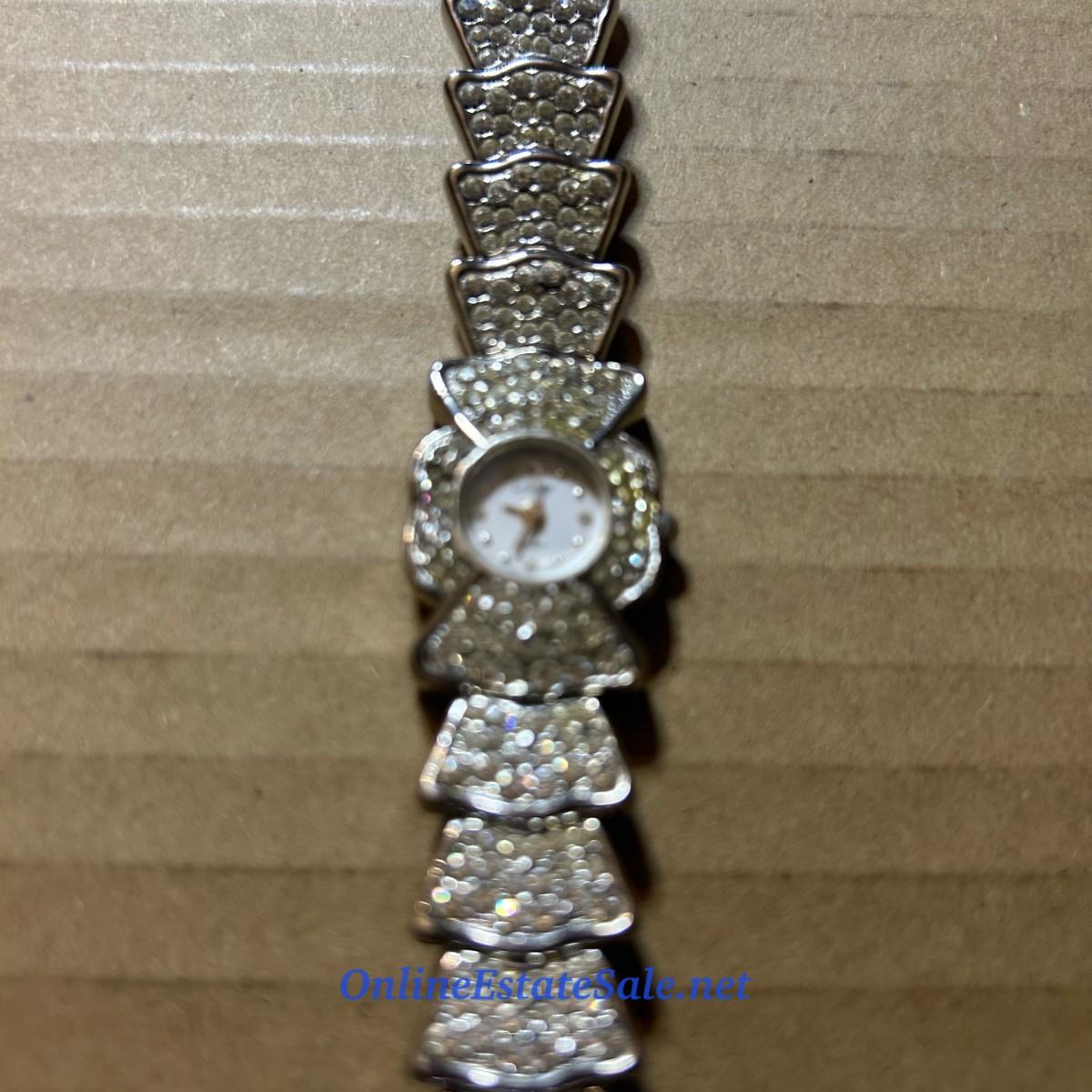 7in Rhinestone Band Decorative Watch with Fold Over Clasp