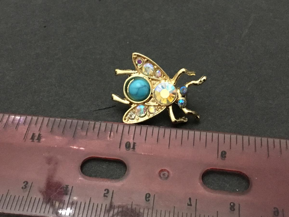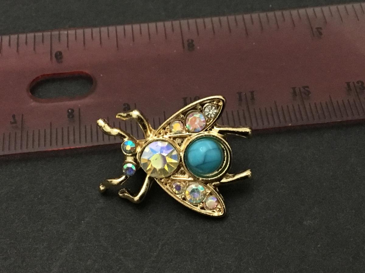 Rhinestones and Faux Turquoise Fly pin Fashion