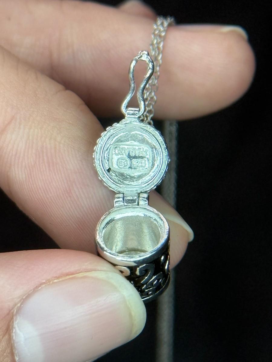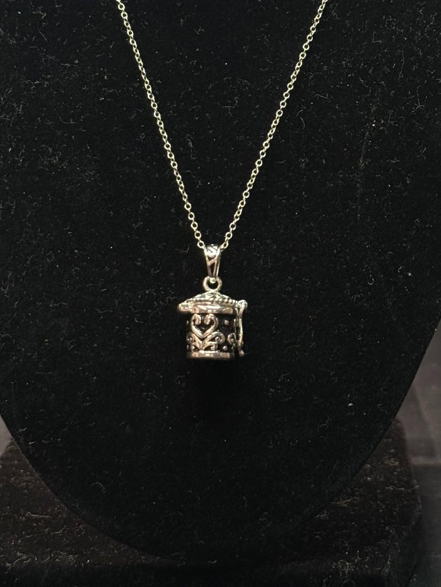 Rhodium Over Sterling Prayer Box Keepsake Lab Amethyst Pendant & Necklace