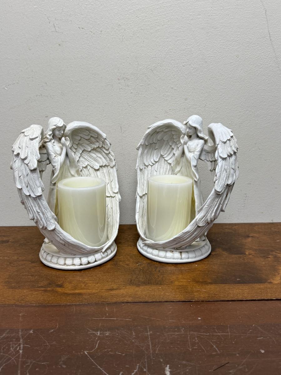 Includes battery-powered LED candles. Good condition. Approx. 8.5" tall.