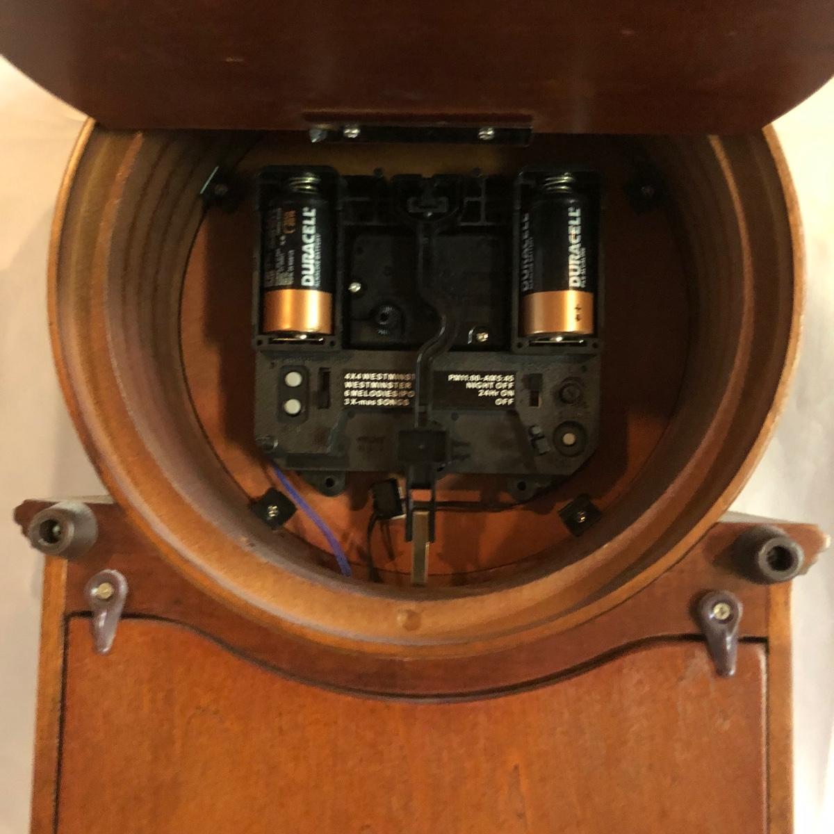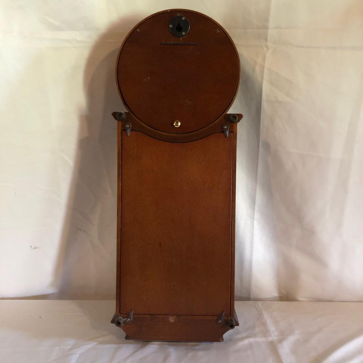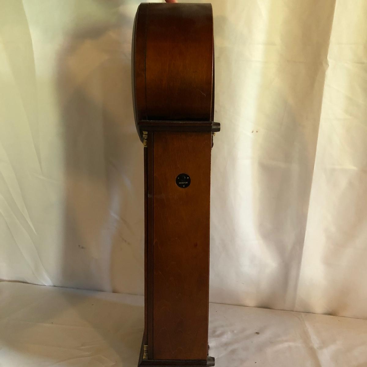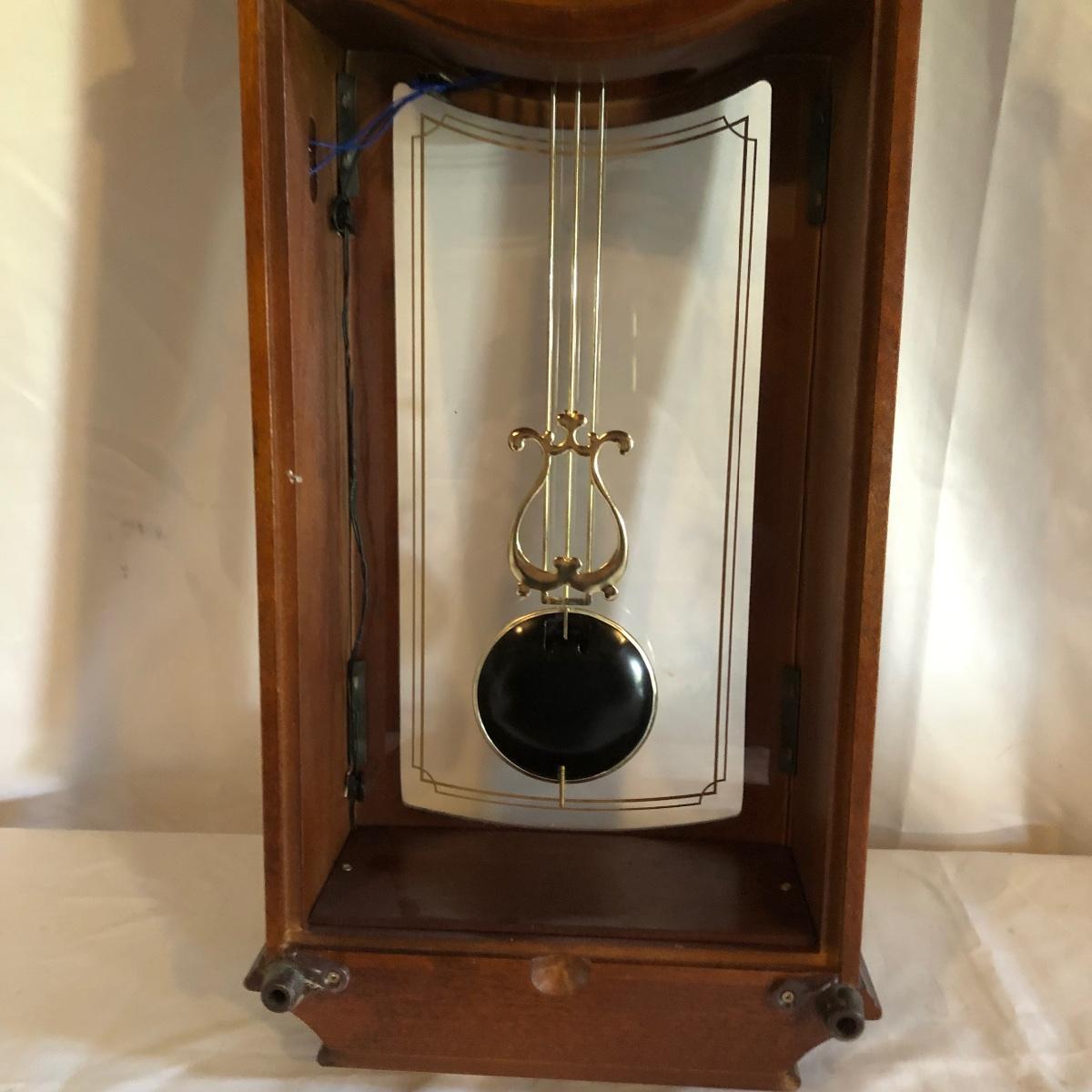 Lot includes Rhythm wall clock that is a wooden body with plexiglass front. Clock and chimes worked when tested.