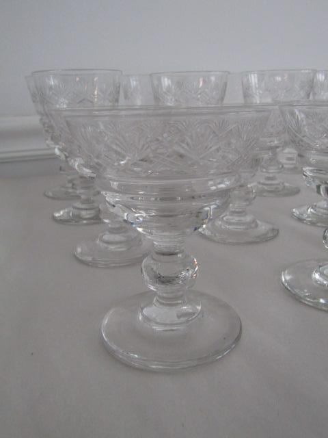 Ribbed, Patterned Crystal Wine Glasses- 2 Sizes- 19 Pieces Total. Nine are 4 Inches in Height, Ten are 5 1/2 Inches in Height.