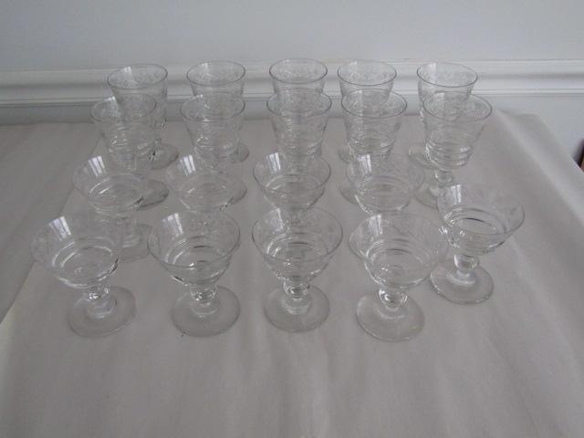 Ribbed, Patterned Crystal Wine Glasses- 2 Sizes- 19 Pieces Total