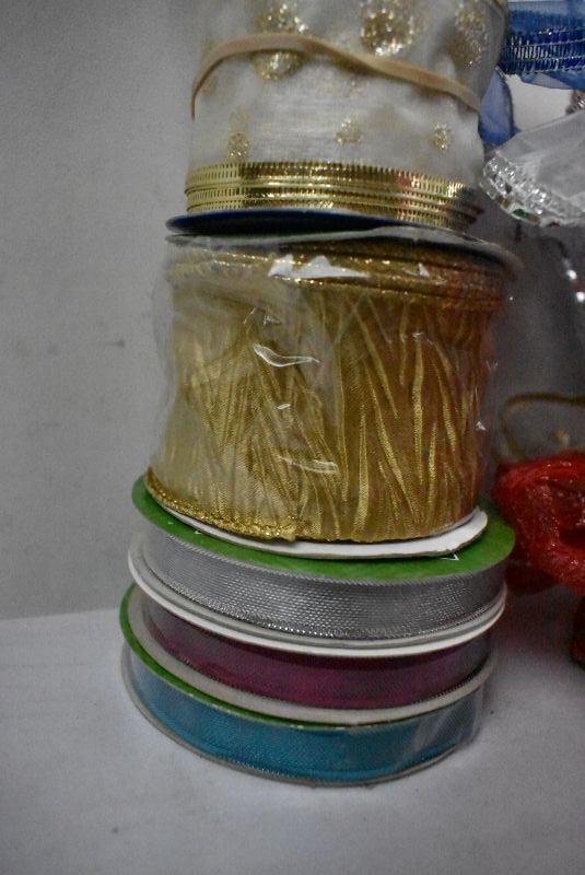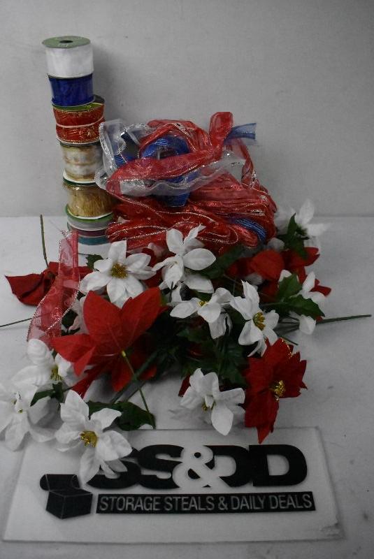 Ribbon & Faux Floral Lot: Christmas/Red/White/Blue/Gold