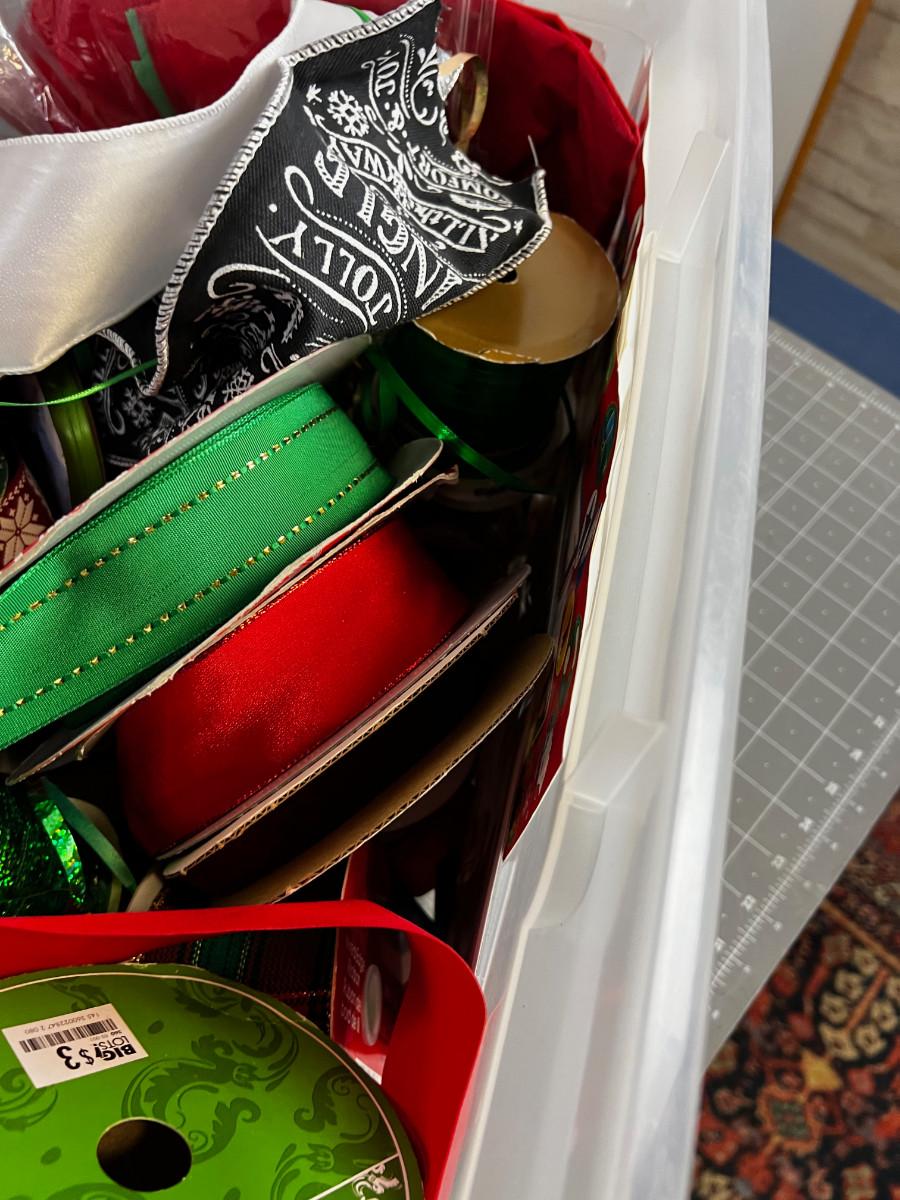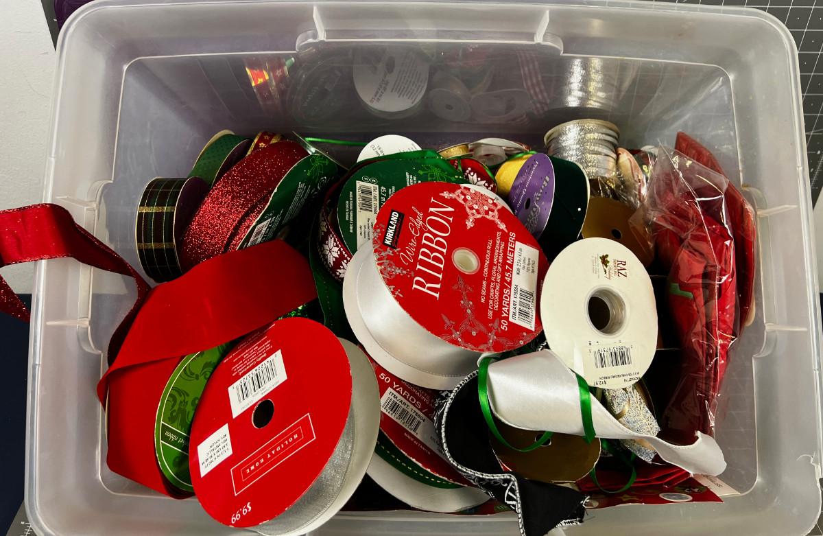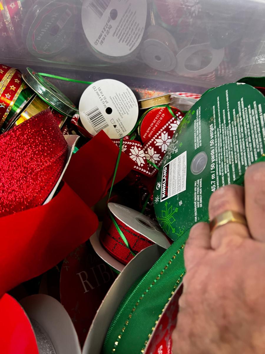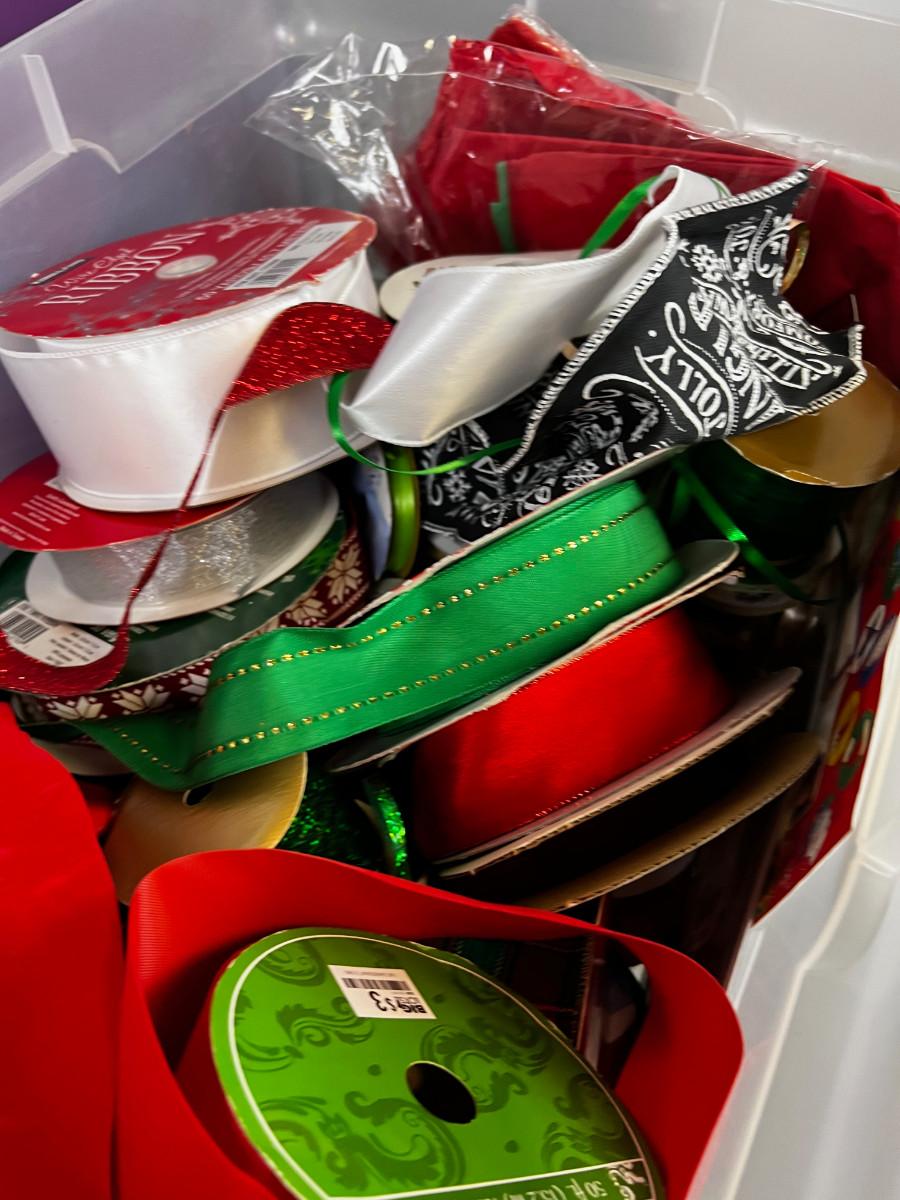 Box of Used and New Holiday Wrapping items