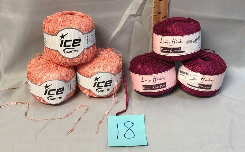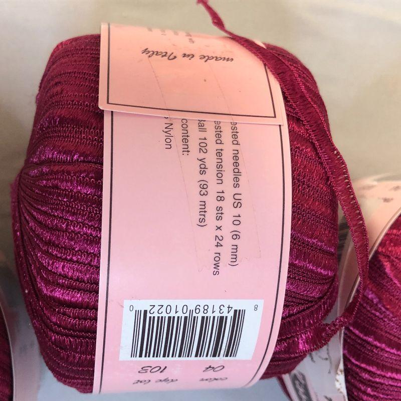 These appear to be unused. There are three skeins of ribbon yarn (about 102 yards each) and three skeins of ladder yard (about 164 yards). The ribbon yard was made in Italy and the ladder yarn was made in Turkey.